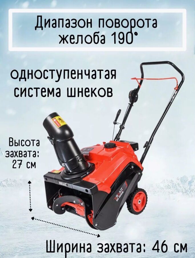 Снегоуборщик BRAIT BR-3046W, бензиновый, одноступенчатый, захват 46x27 см, 3л. с. информация: