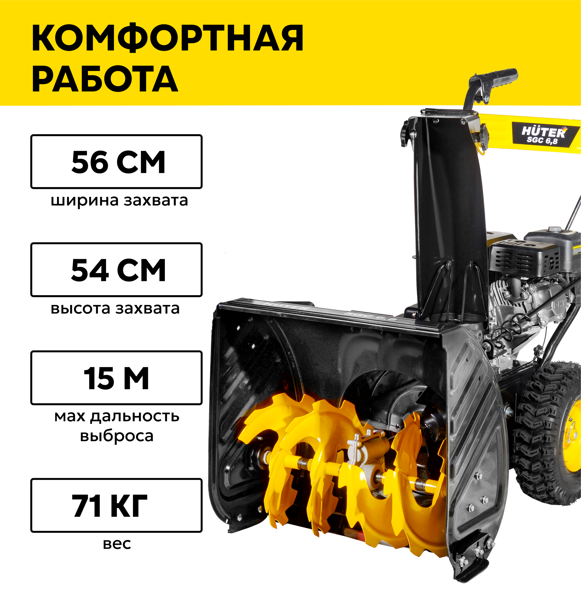 Снегоуборщик Huter SGC 6,8, 7 л. с, ковш - 56 см x 54 см, 5 вперед / 2 назад информация: