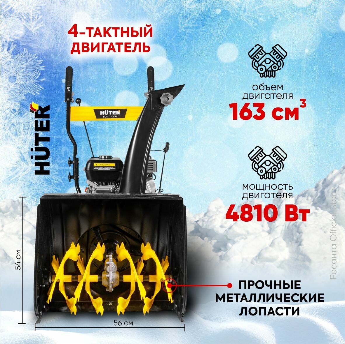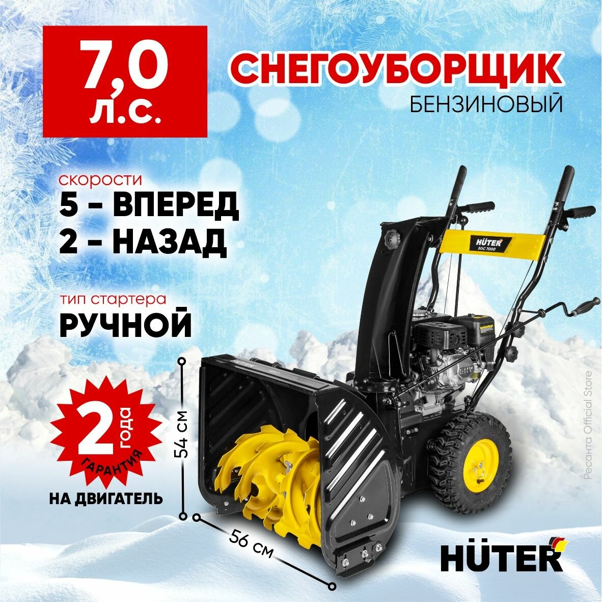 Снегоуборщик Huter SGC 7000, 7 л. с, 5 вперед/2 назад, бак 3.6 л информация: