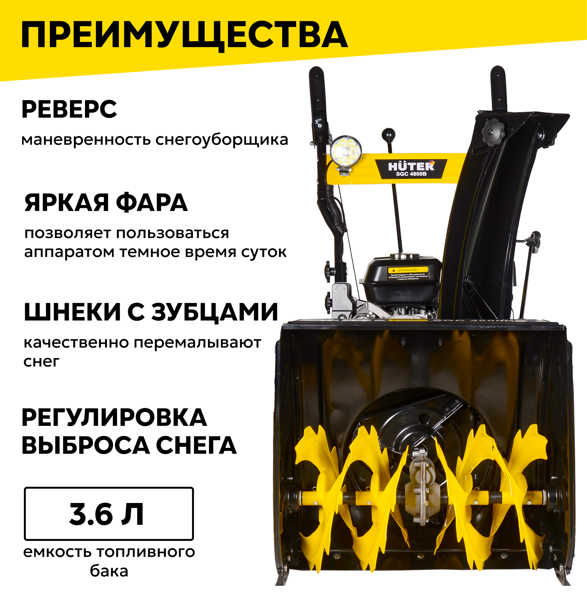 Снегоуборщик HUTER SGC 4800B, 7 л. с. ковш 56х54см, 5 веред/ 2 назад информация:
