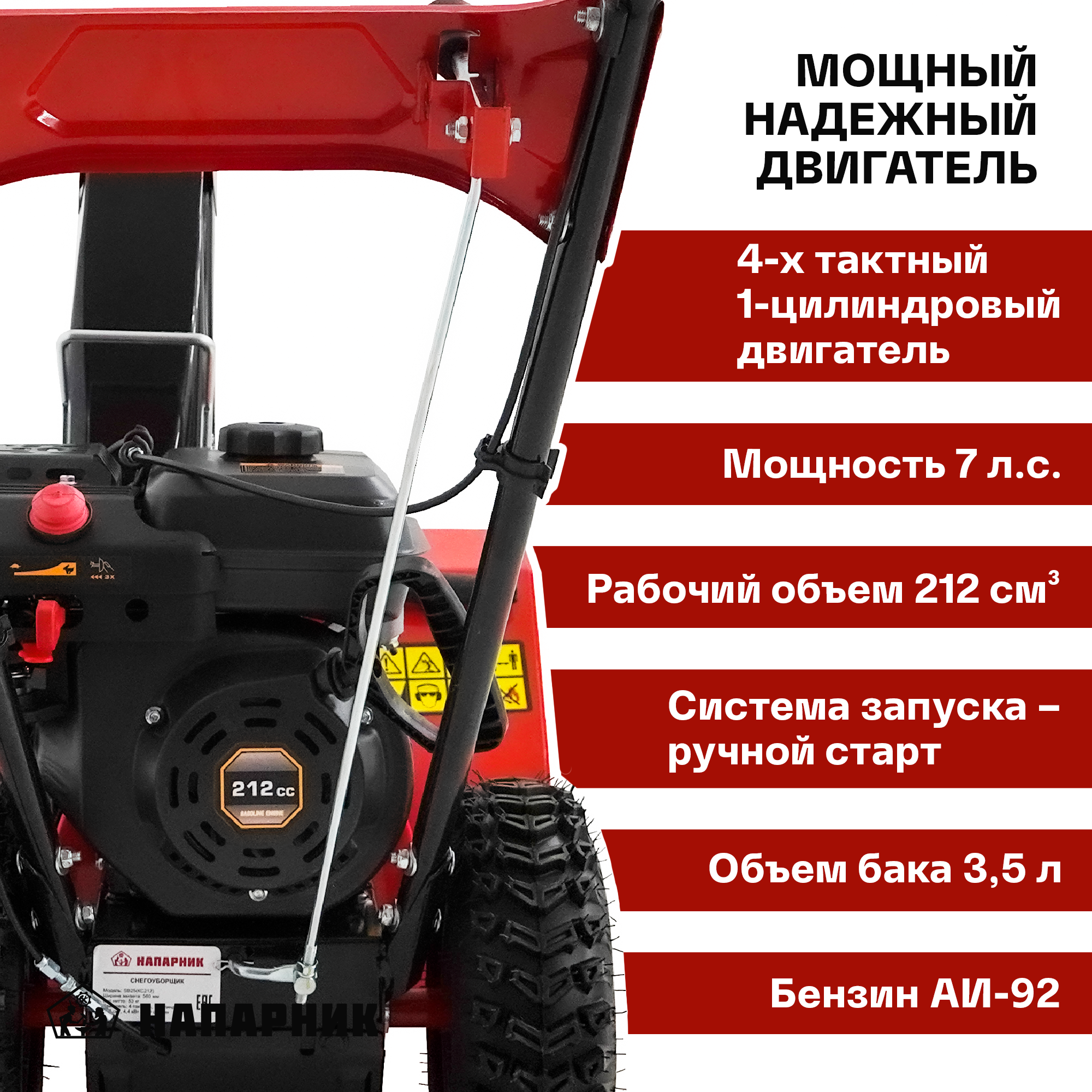 Снегоуборщик бензиновый Напарник SB25 (KC212), 7лс, выброс 11м, передачи 4 вперед 1 назад, самоходный информация: