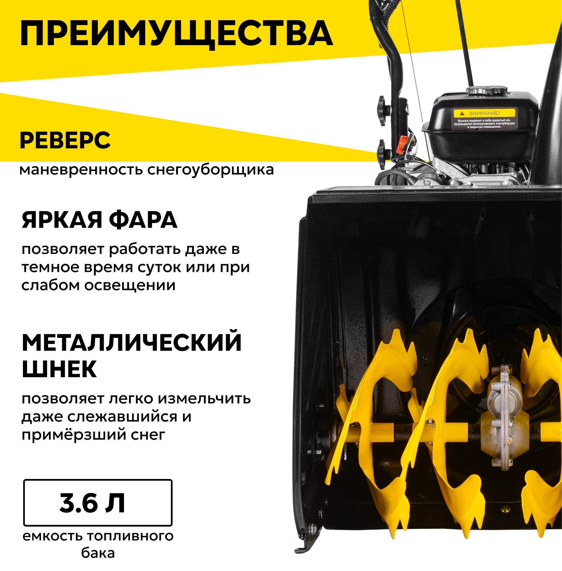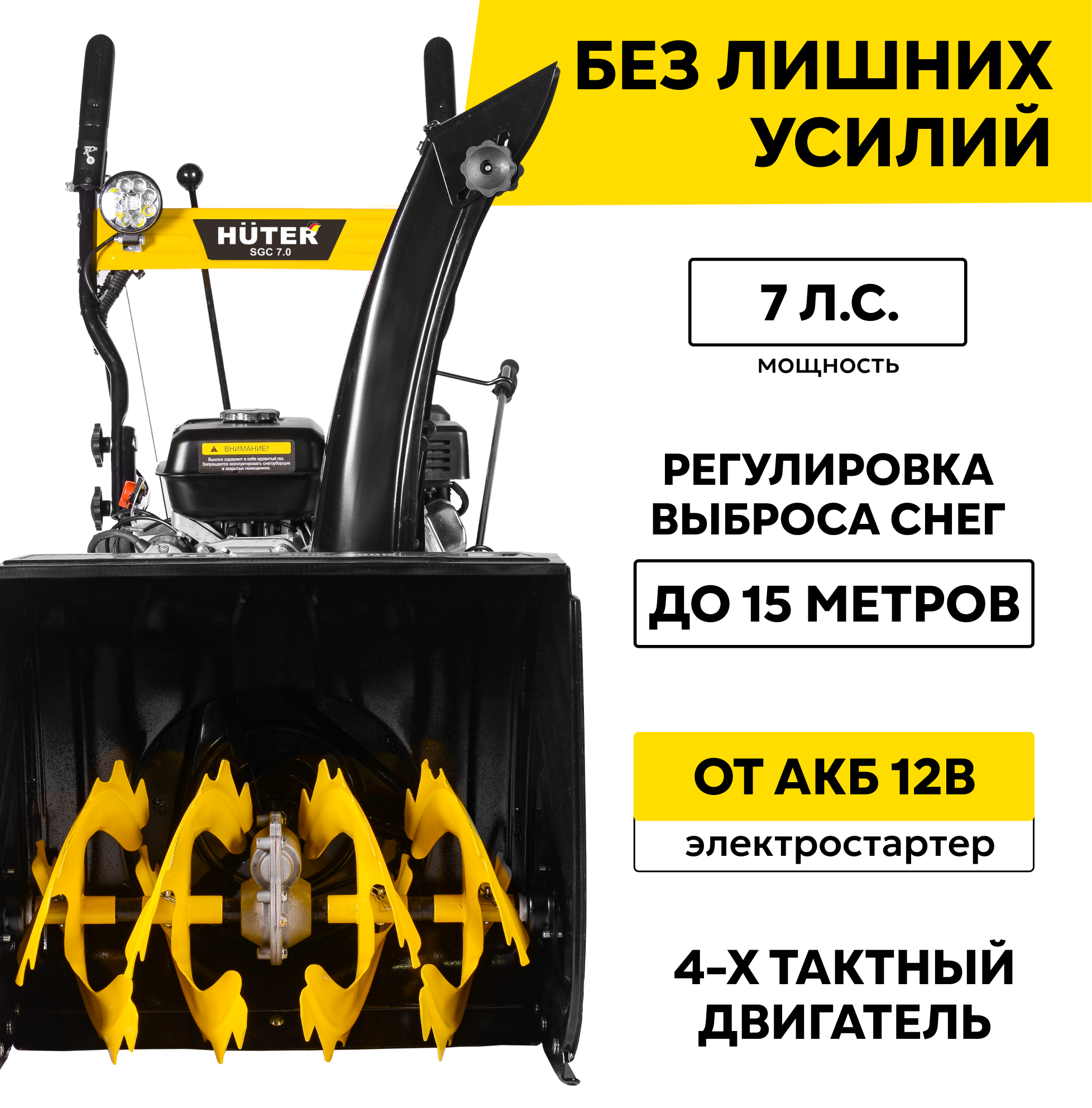 Снегоуборщик Huter SGC 7,0, 7 л. с. ковш 56х54 см, электростартер от АКБ, 5 вперед/ 2 назад информация: