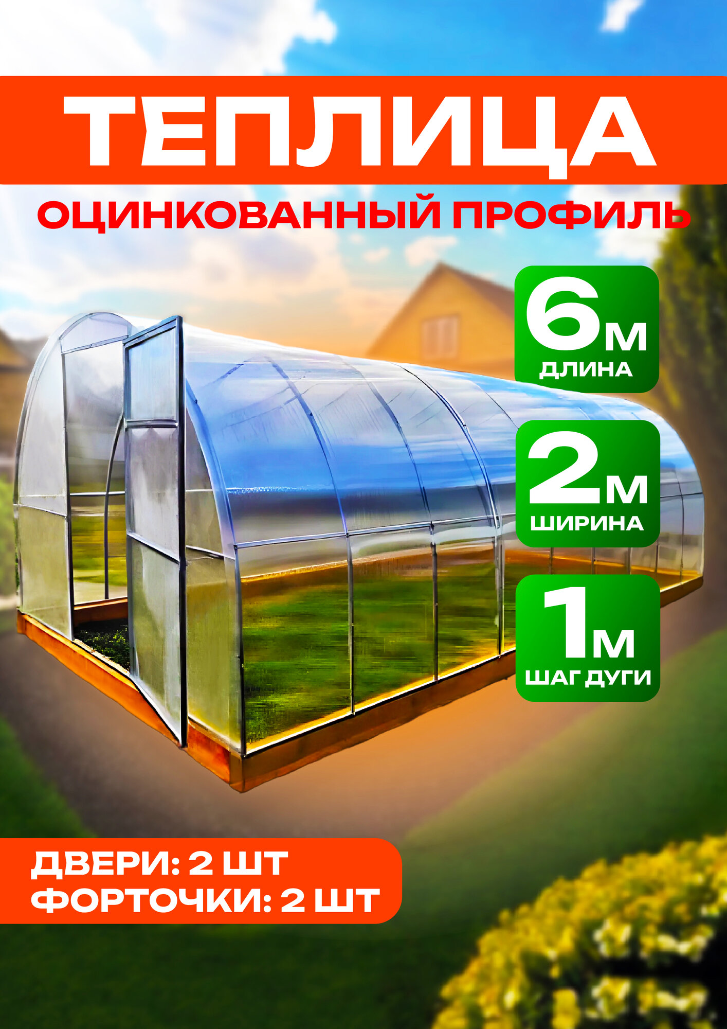 10 цен на Теплица арочная с поликарбонатом, дуги 20 на 20. 6х2х2.02 с шагом 1 м.