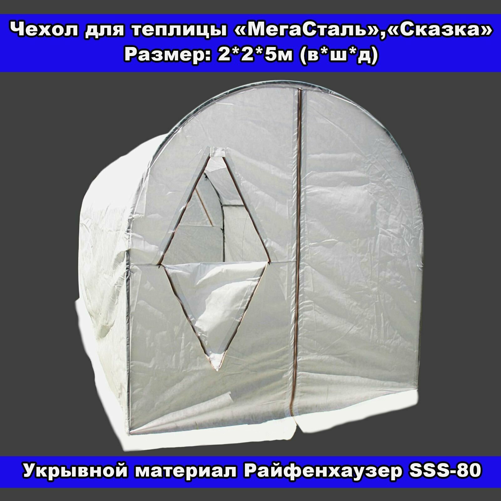 Чехол для теплицы "МегаСталь", "Сказка" 2*2*5 м (в*ш*д) из укрывного материала Райфенхаузер SSS80, тип "Дышащий" информация: