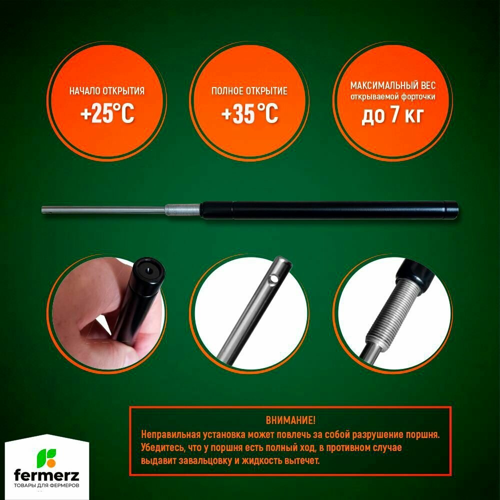 Термопривод автоматический для дверей и форточек теплицы до 15 кг на 180 градусов, автоматический открыватель, проветривание для парника