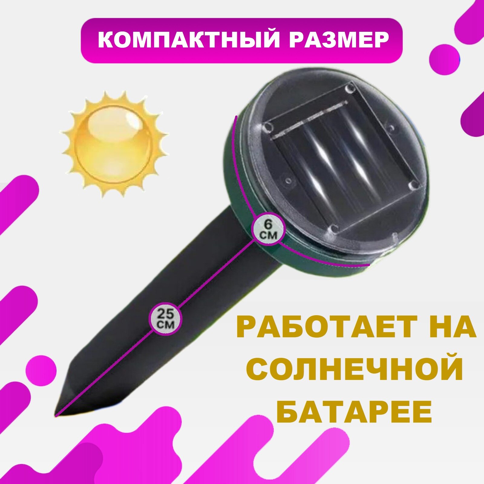Отзывы на Ультразвуковой отпугиватель вредителей кротов, мышей, грызунов, землероек, крыс, змей на солнечных батареях, набор 4 шт