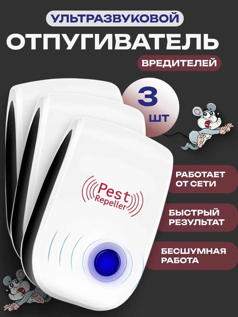 Отзывы на Ультразвуковой отпугиватель грызунов и насекомых, мышей, комплект 3 штуки