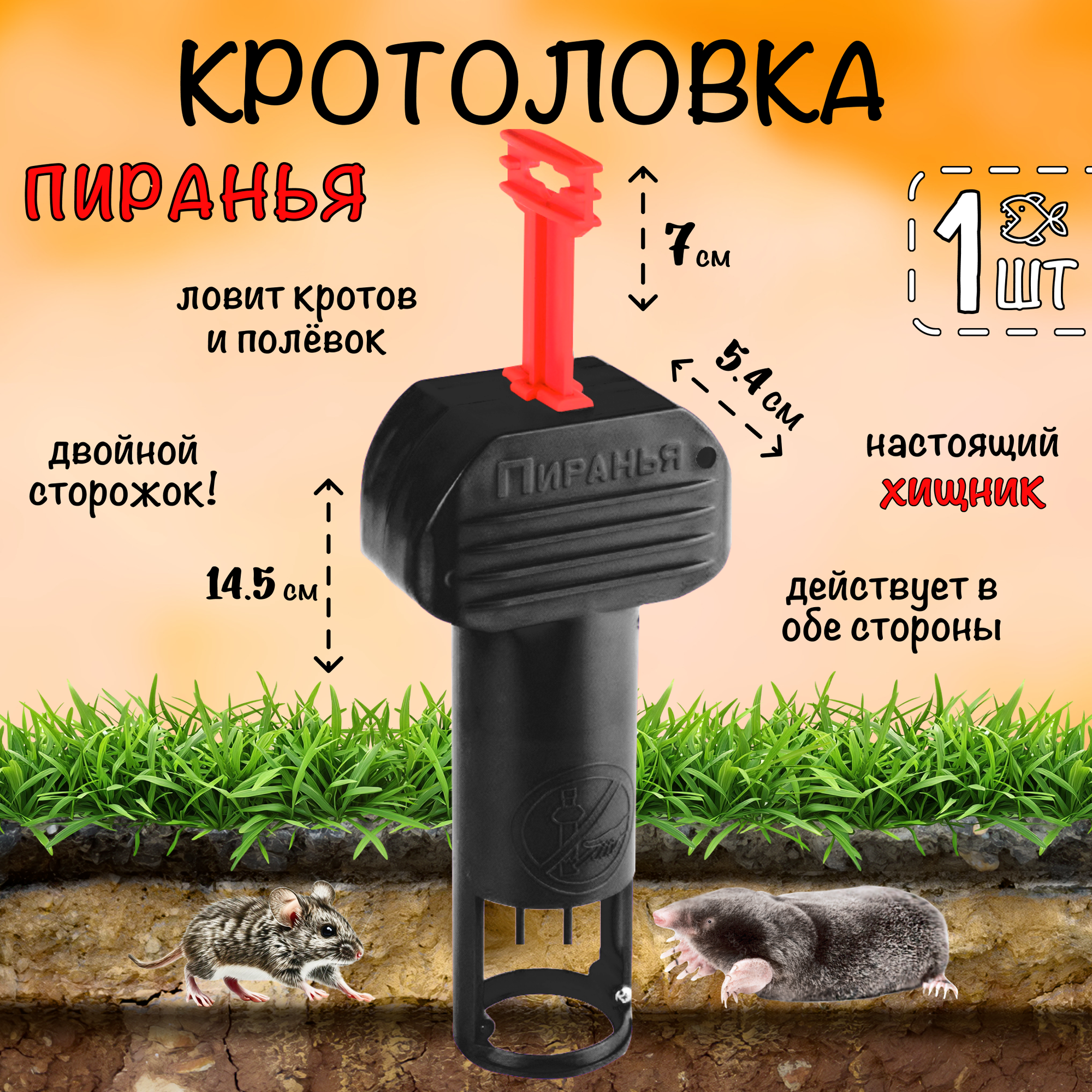 Отзывы на Кротоловка Пиранья (красный рычаг), капкан для кротов, мышеловка, Планета Садовод, Черно/Красный, 1 штука