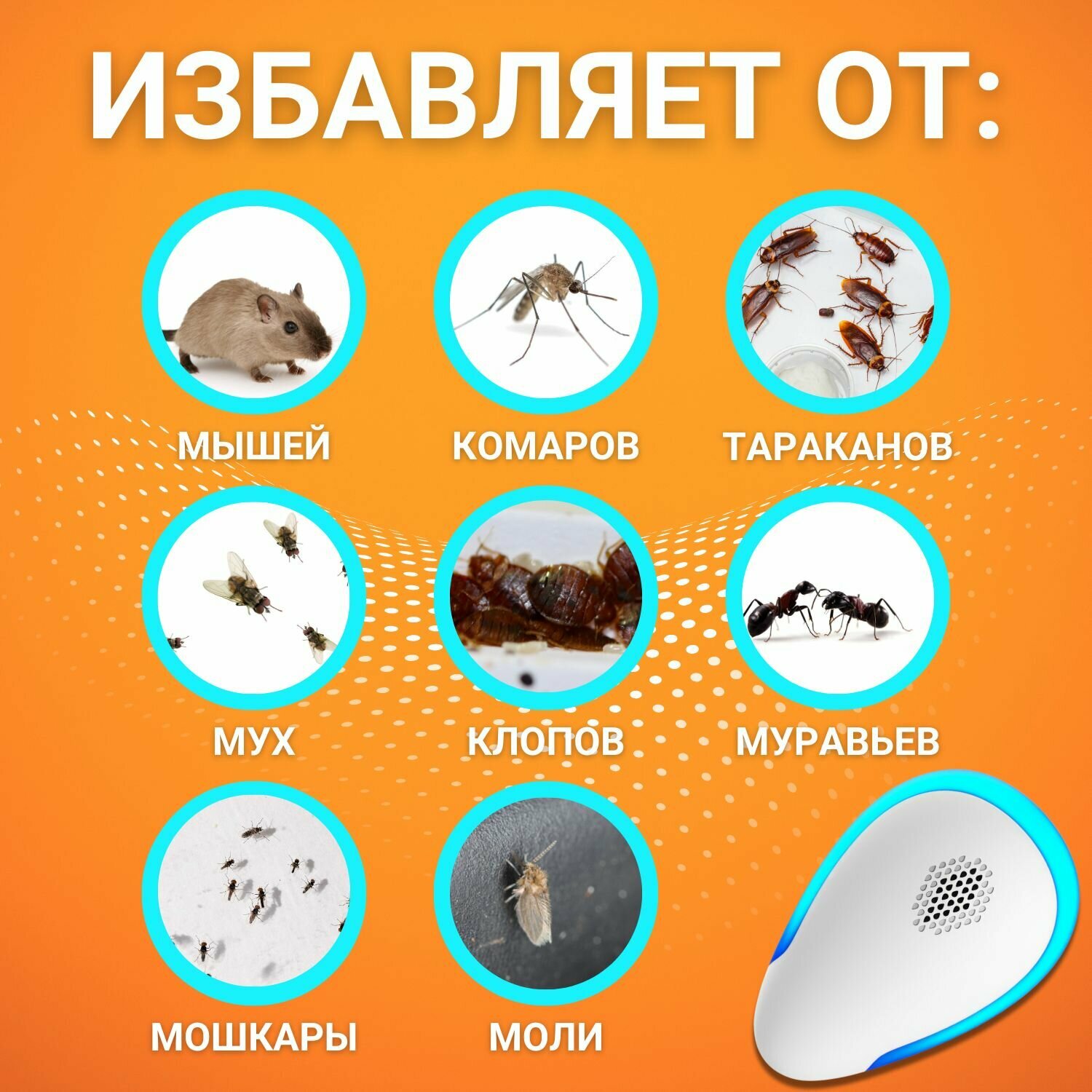 10 цен на Отпугиватель мух, комаров и тараканов ультразвуковой для дома / защита от грызунов и насекомых вредителей