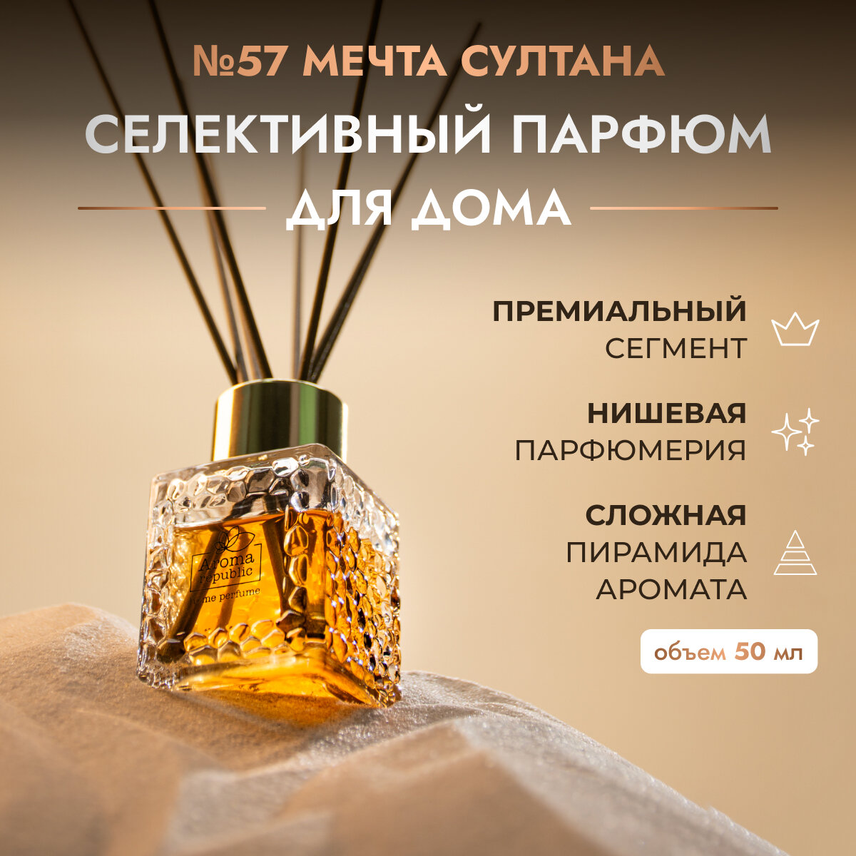 AROMA REPUBLIC Ароматический диффузор в стеклянном флаконе 50 мл,"№57 Sultan's dream" информация: