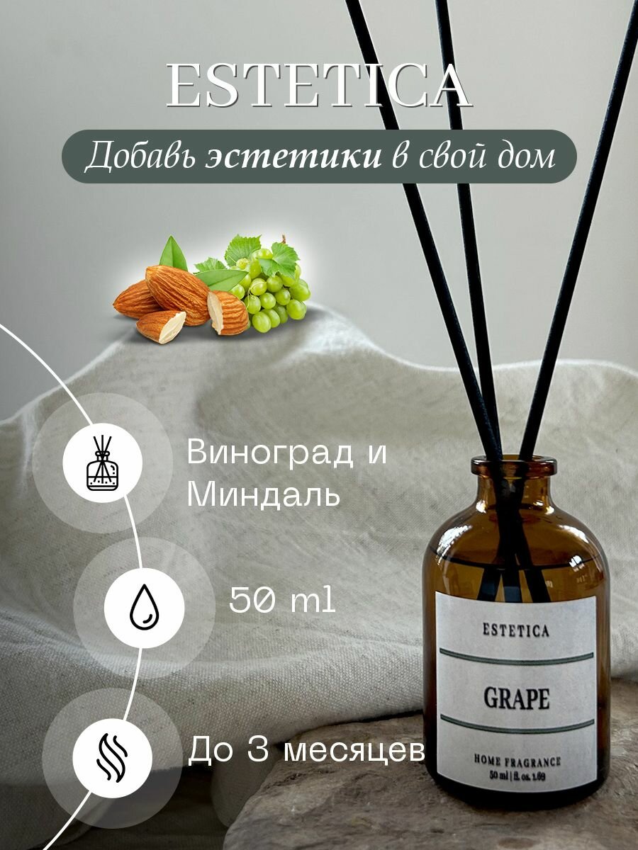 10 цен на Ароматизатор для дома, Диффузор ароматический с палочками ESTETICA Виноград и Миндаль 50 мл