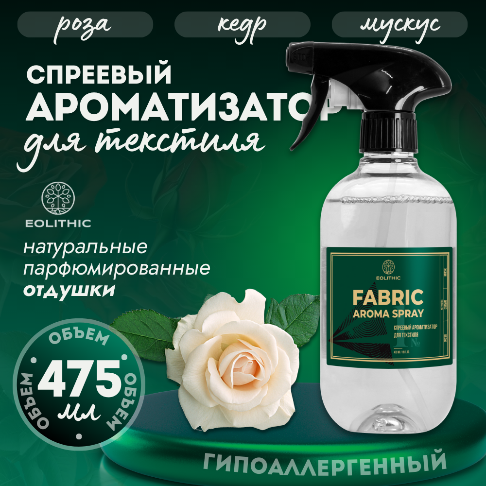 10 цен на Спреевый ароматизатор для текстиля EOLITHIC FABRIC AROMA SPRAY №1 - Роза / Кедр / Мускус 475 мл