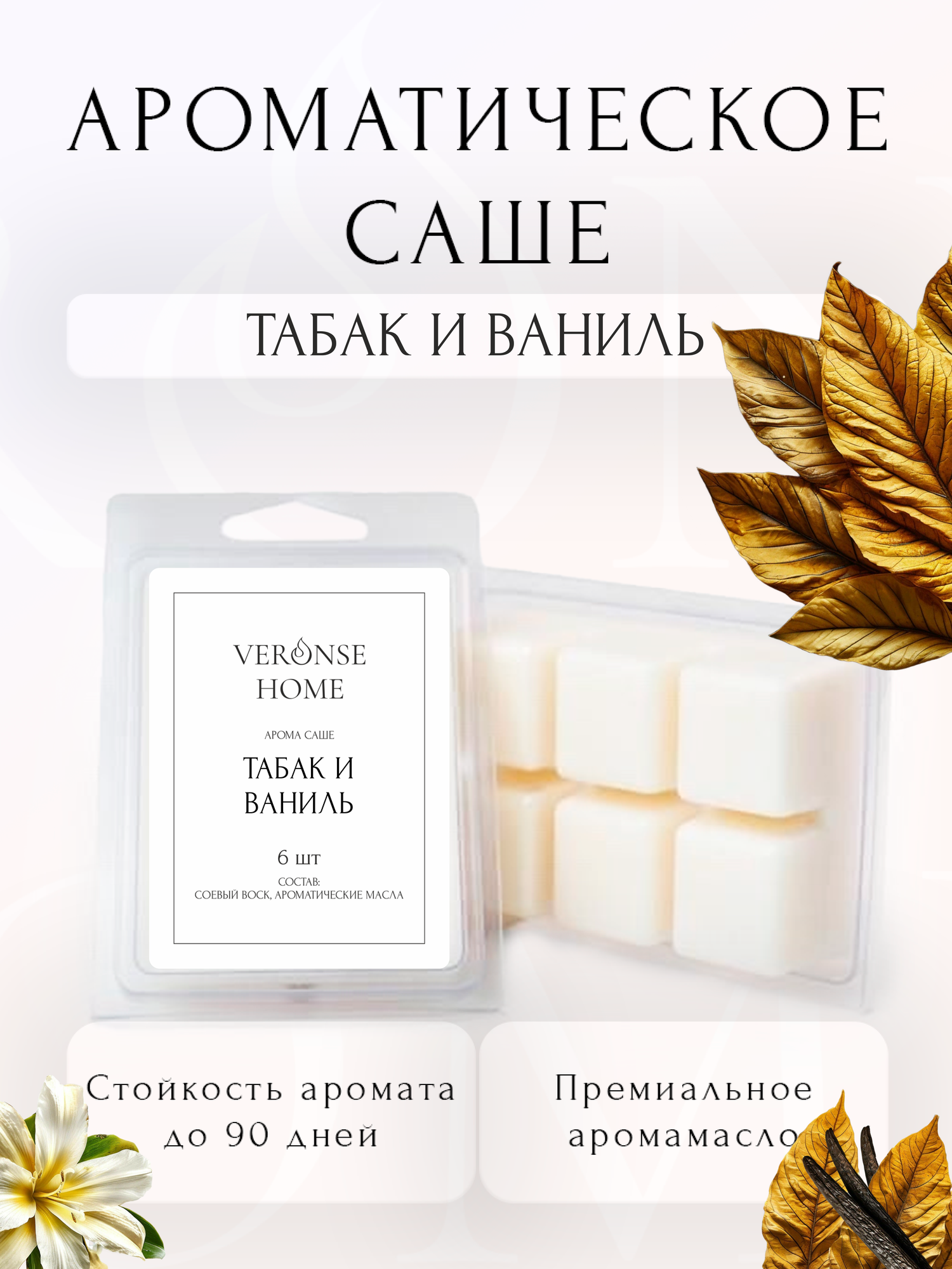Саше для шкафа и белья ароматическое "Veronse Home". Ароматизатор в шкаф и мелтсы для одежды "Табак и ваниль" информация: