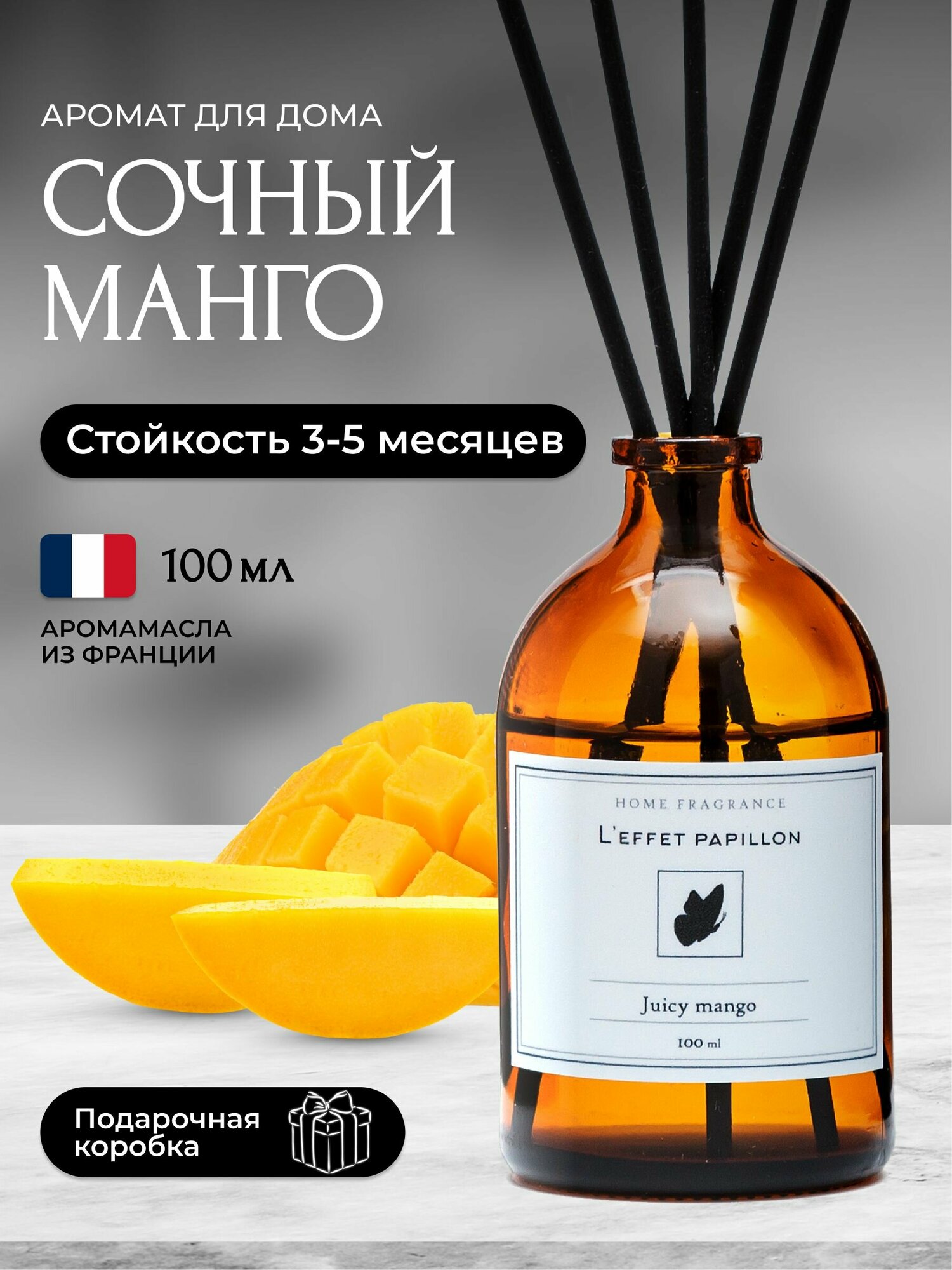 Диффузор ароматизатор для дома с палочками Сочный Манго, 100 мл информация: