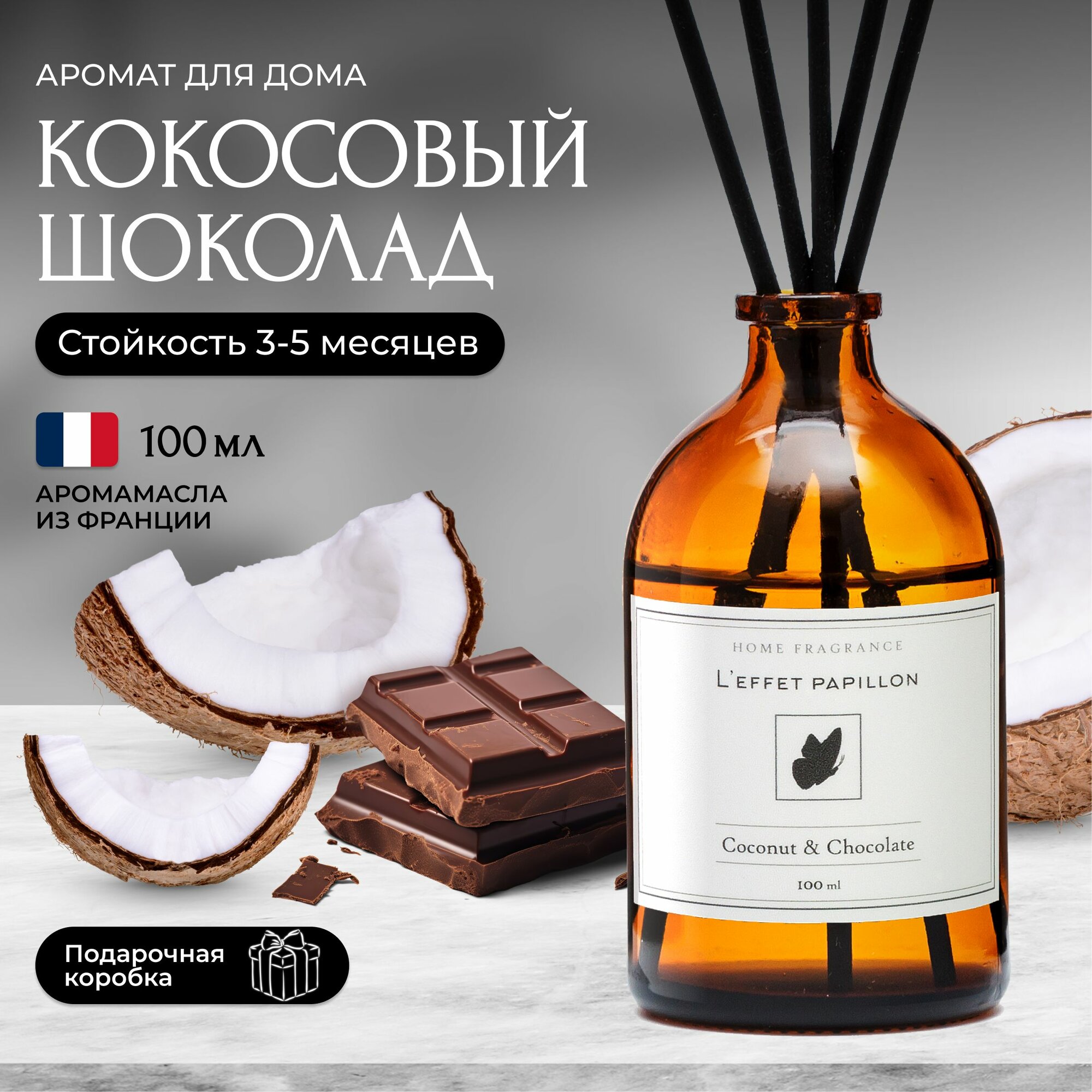 Диффузор ароматизатор для дома с палочками Шоколад Кокос, 100 мл информация: