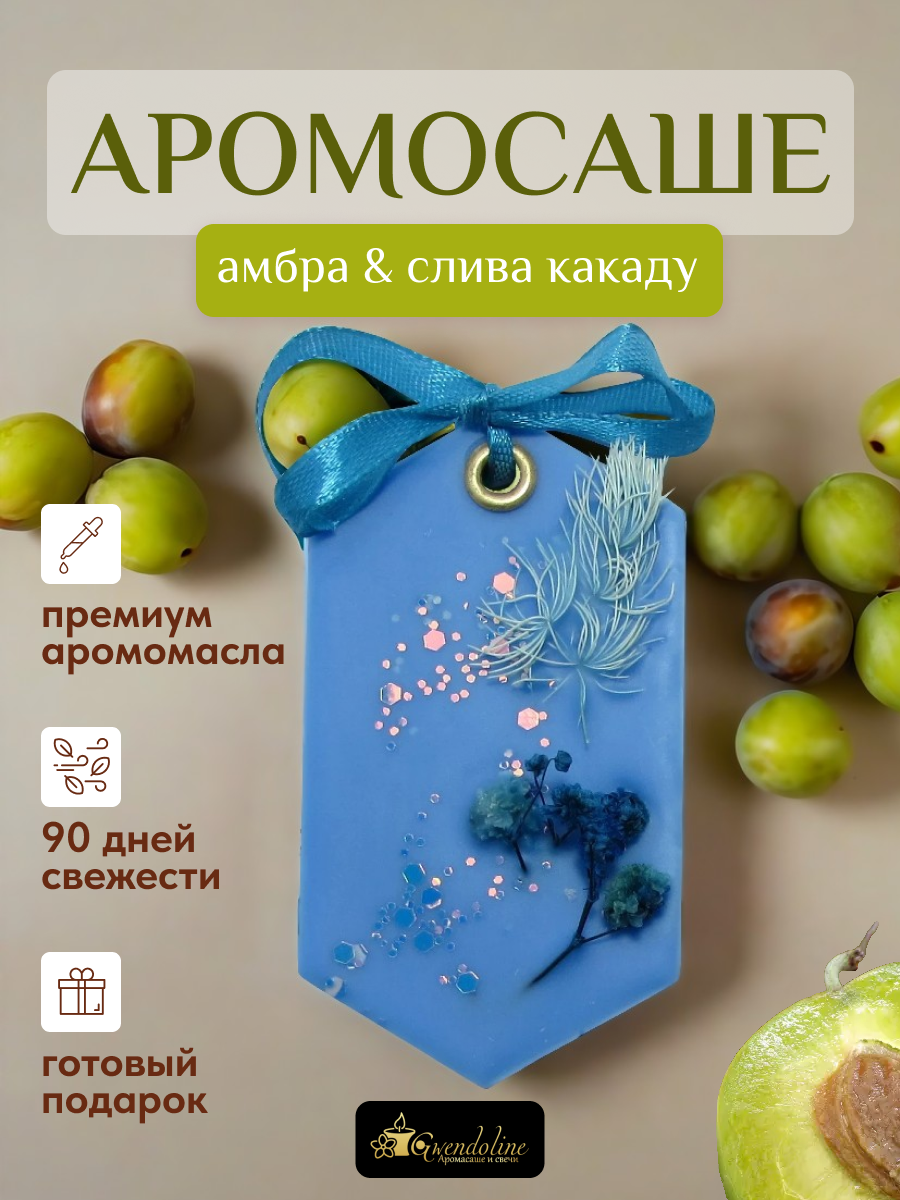Аромасаше " Слива какаду и амбра" ручной работы из соевого воска м сухоцветами информация: