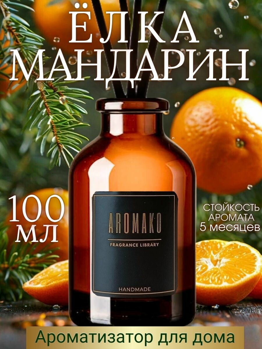 Отзывы на Ароматический диффузор с палочками Ёлка и мандарин 100 мл AROMAKO, ароматизатор для дома и офиса, парфюм для дома
