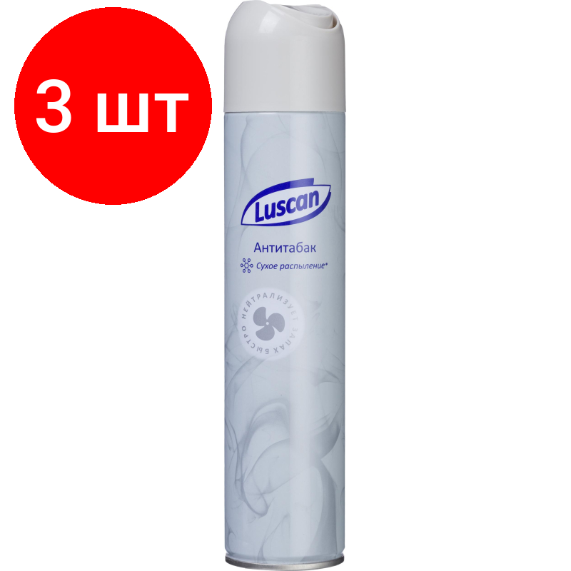 10 цен на Комплект 3 штук, Освежитель воздуха Luscan 330мл Антитабак сухое распыл