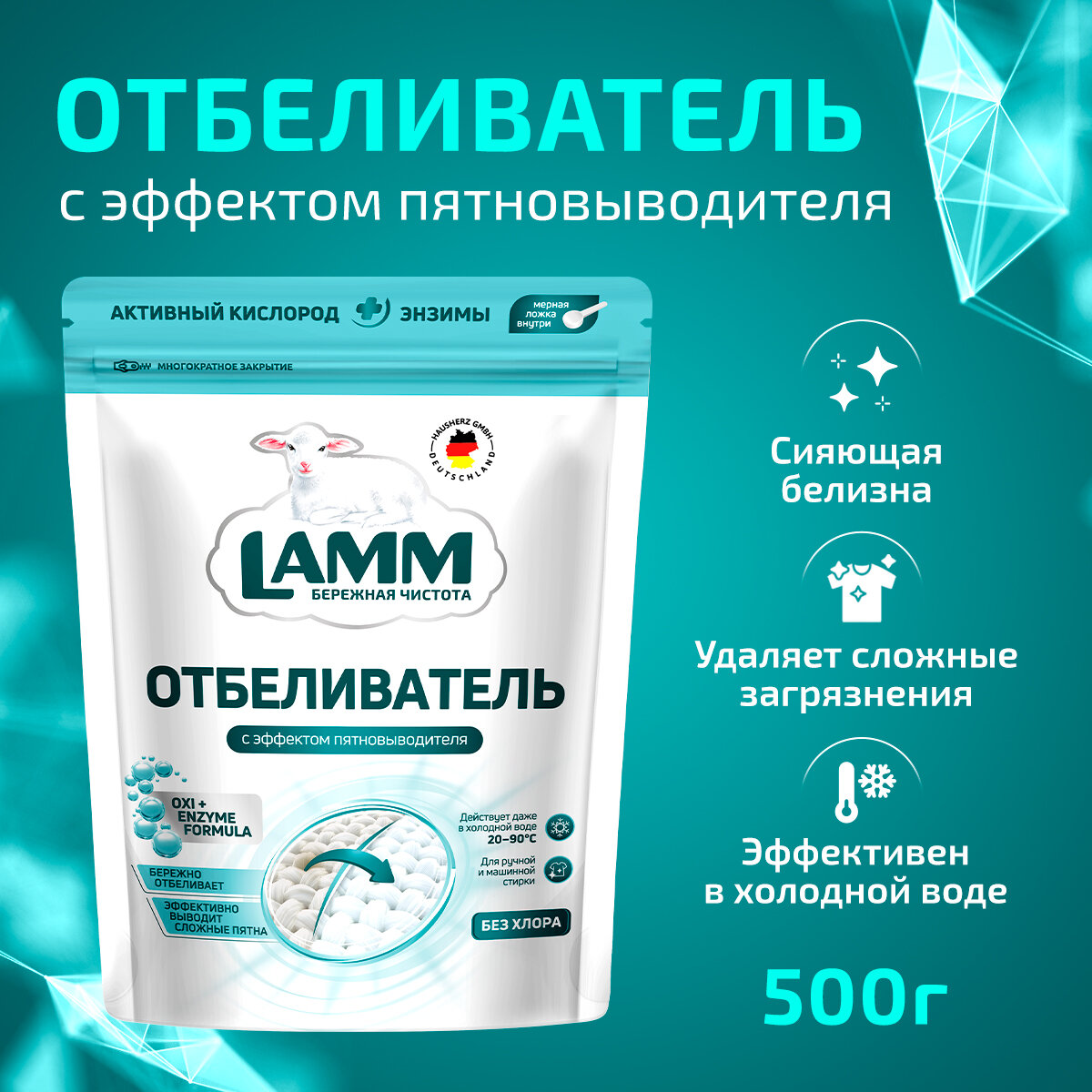 Отбеливатель LAMM с эффектом пятновыводителя, порошкообразный, для белых тканей информация: