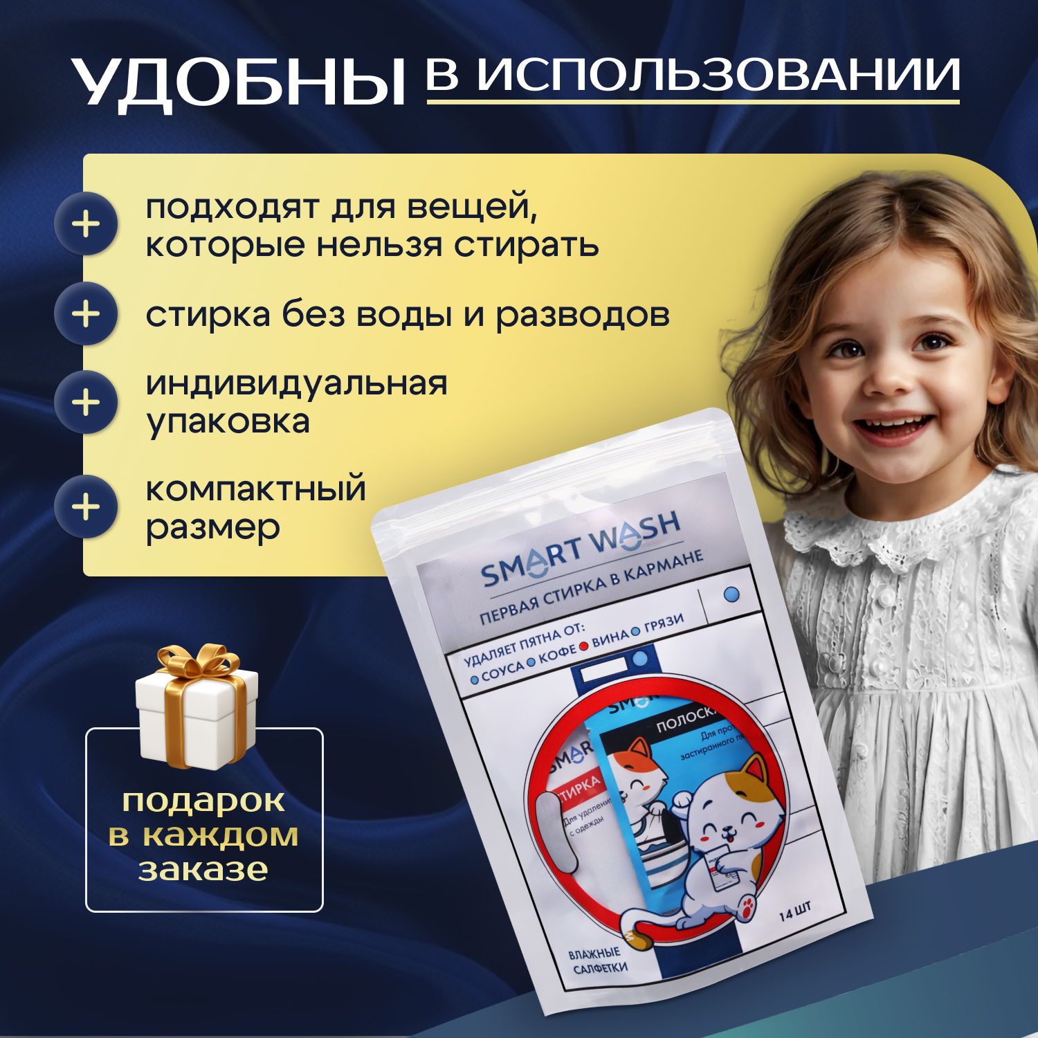 SMART WASH Салфетки для удаления пятен с одежды 42 шт, пятновыводящие информация: