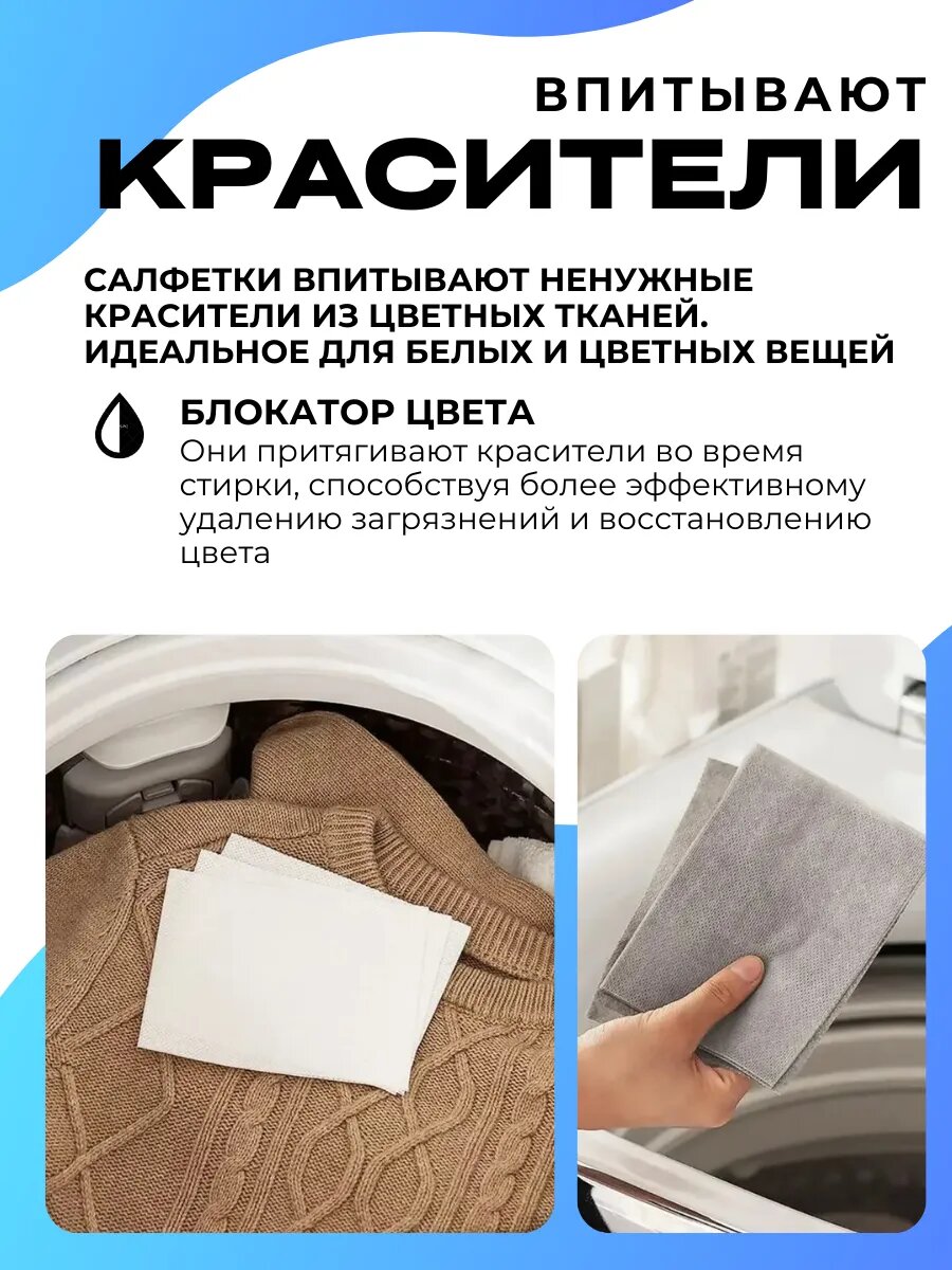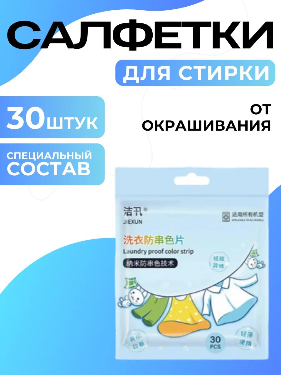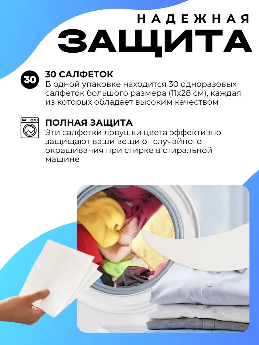 Салфетки для стирки, 30 штук, безворсовые, для белого и цветного информация: