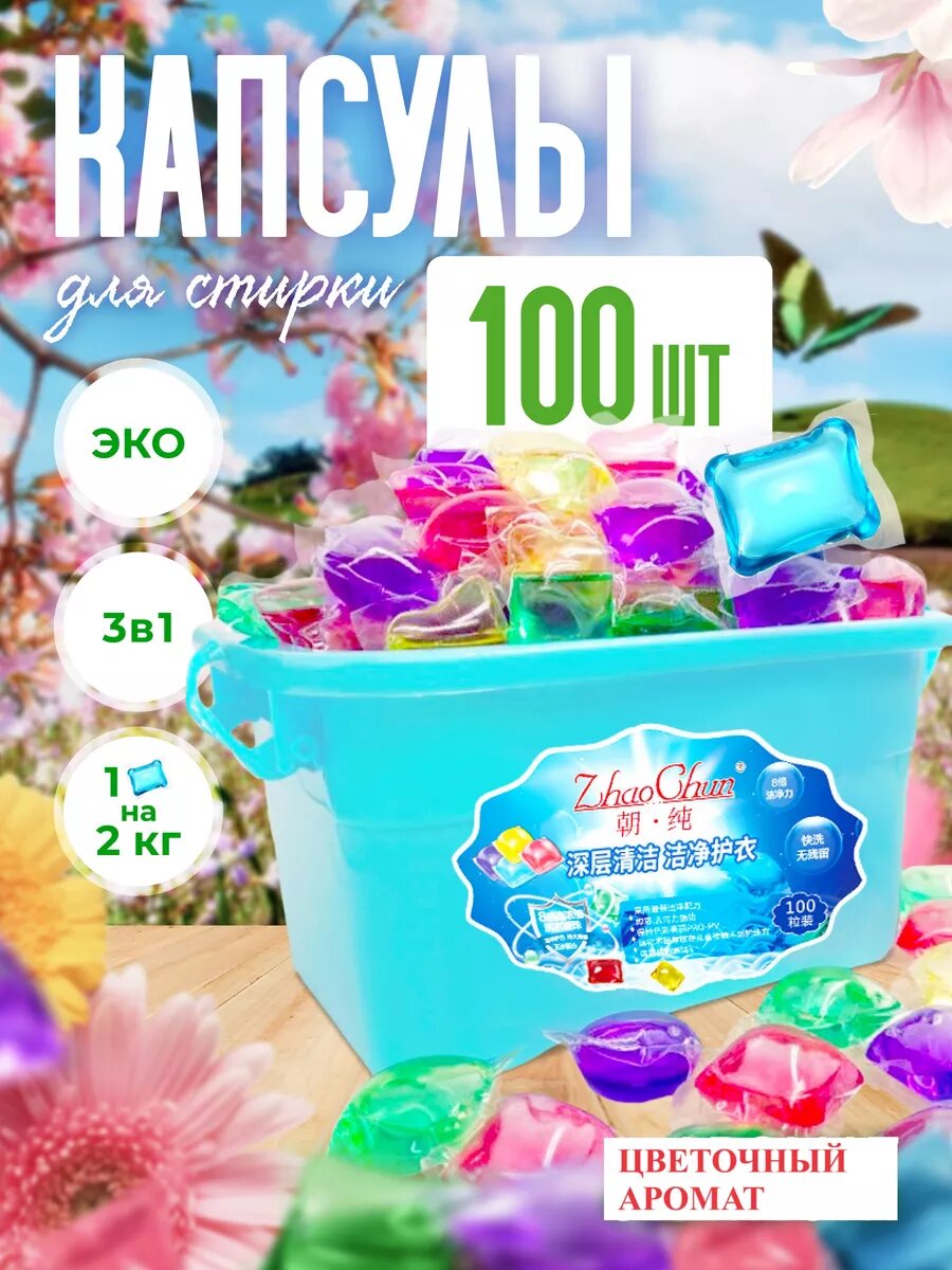 10 цен на ZHAO CHUN, Капсулы для стирки с цветочным ароматом, концентрат 3 в 1, 100 шт.