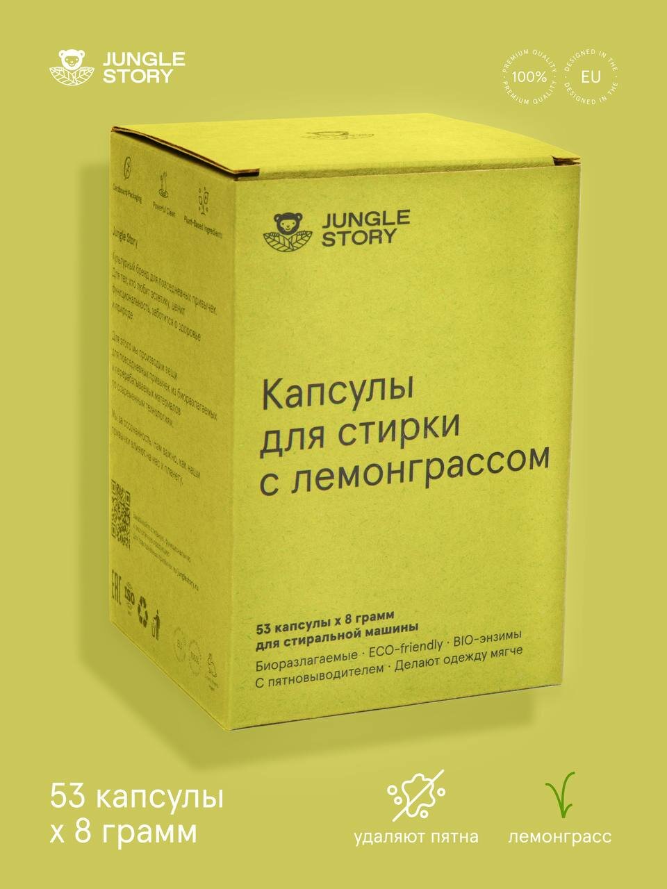 Капсулы для стирки Jungle Story Lemongrass, экологичные, для всех типов тканей, 53 шт информация: