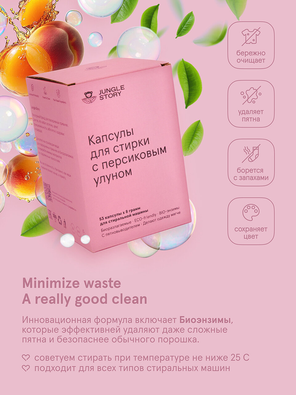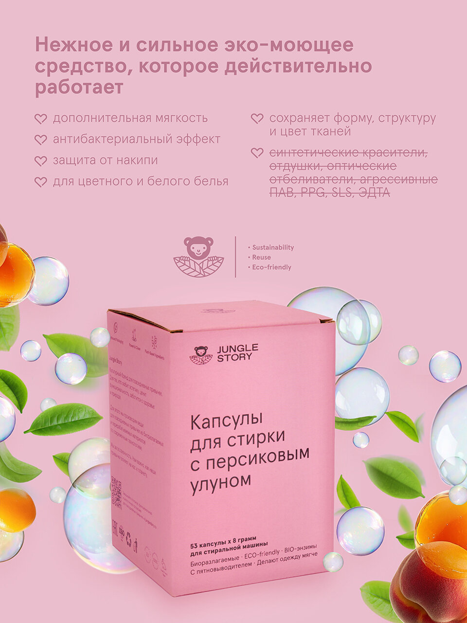 Капсулы для стирки Jungle Story с ароматом персикового улуна, 53 капсулы 940 ₽