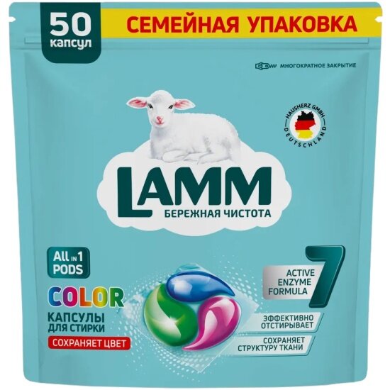 10 цен на Капсулы для стирки Lamm Color для цветного белья, 50 шт