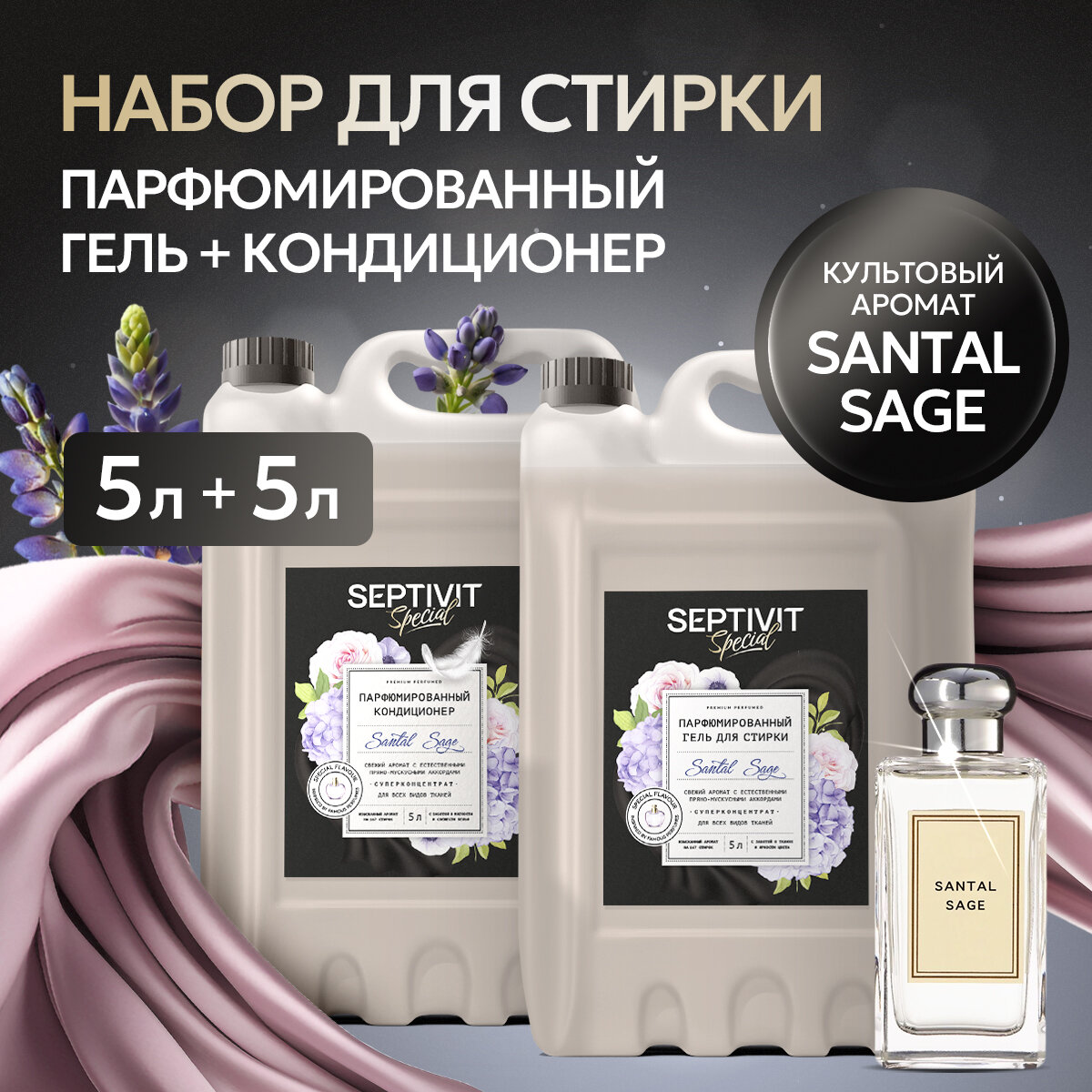 10 цен на Набор для стирки парфюмированный SEPTIVIT Special Гель для стирки Santal Sage + кондиционер Santal Sage, 5+5л