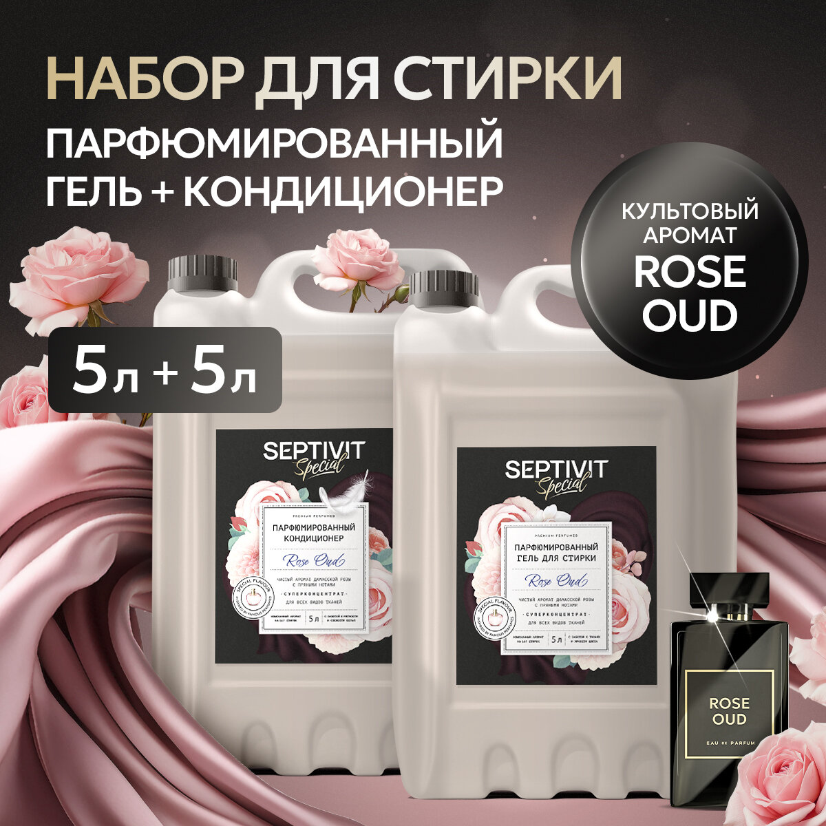 Набор для стирки парфюмированный SEPTIVIT Special Гель для стирки Rose Oud + кондиционер Rose Oud, 5+5л информация: