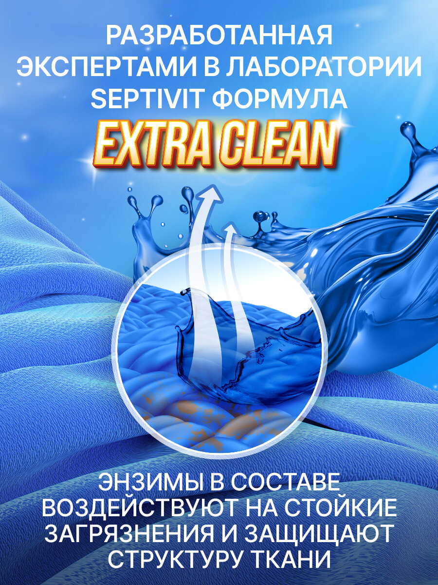 Гель для стирки Septivit Extra Clean, для сильнозагрязненных тканей, универсальный, с энзимами, канистра, 5 л информация: