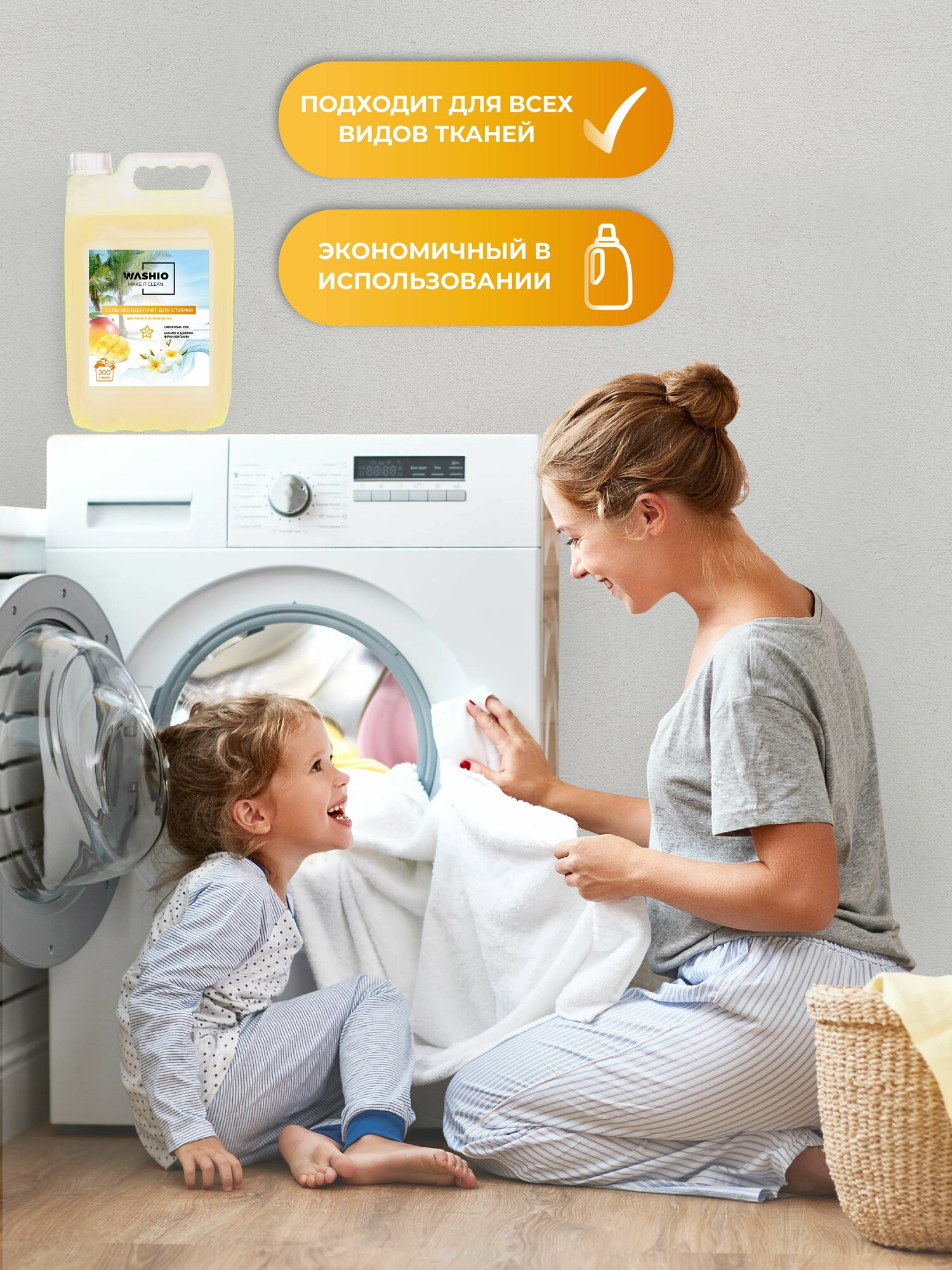 10 цен на Гель-концентрат для стирки 5л+Кондиционер для белья 5л WASHIO Манго и цветок Франжипани