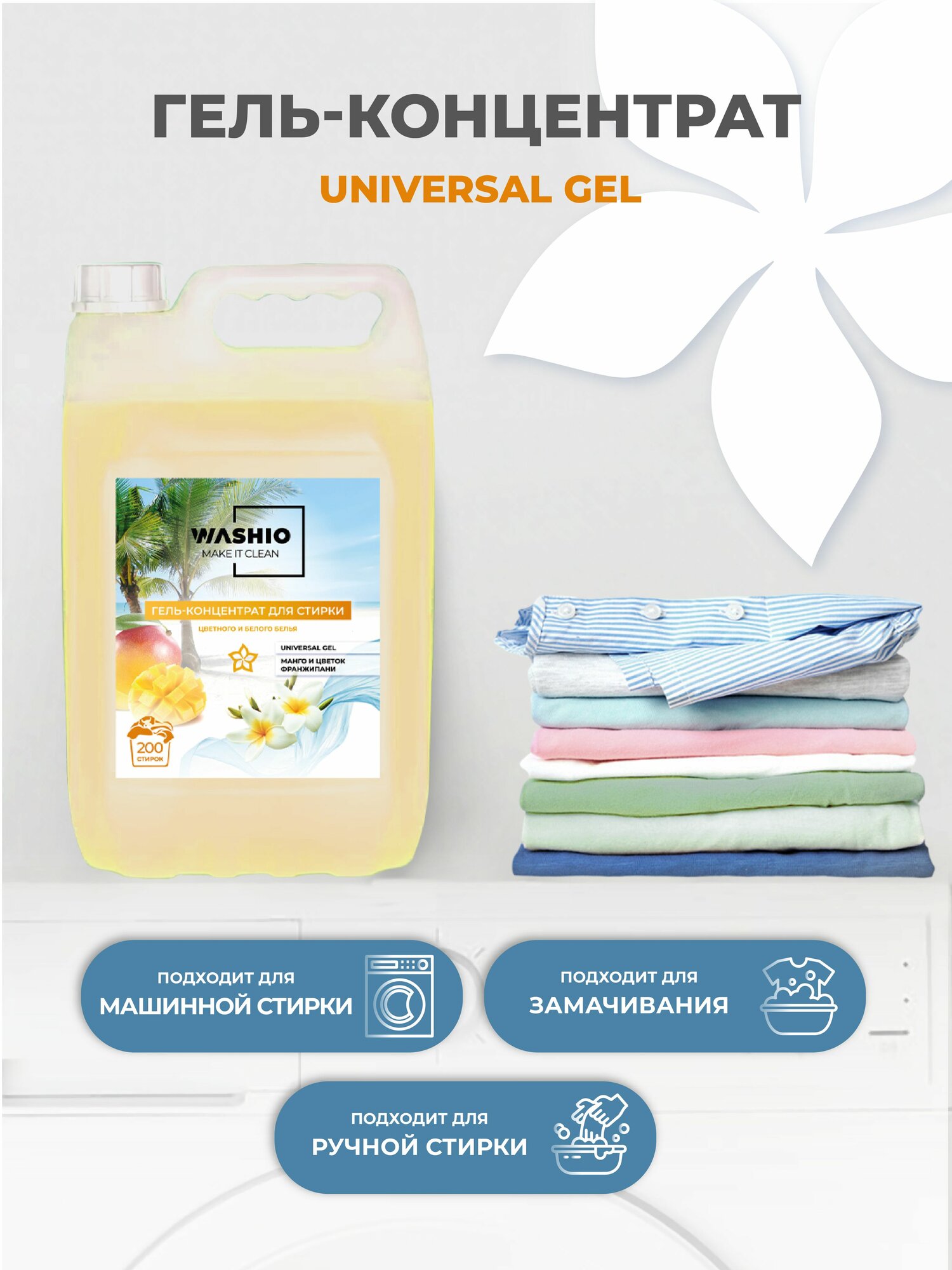 10 цен на Гель-концентрат для стирки 5л WASHIO Манго и цветок Франжипани