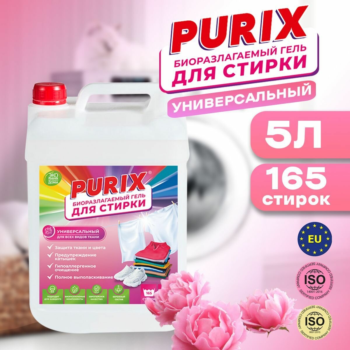 Гель для стирки белья Purix универсальный, для всех типов тканей 5 литров информация: