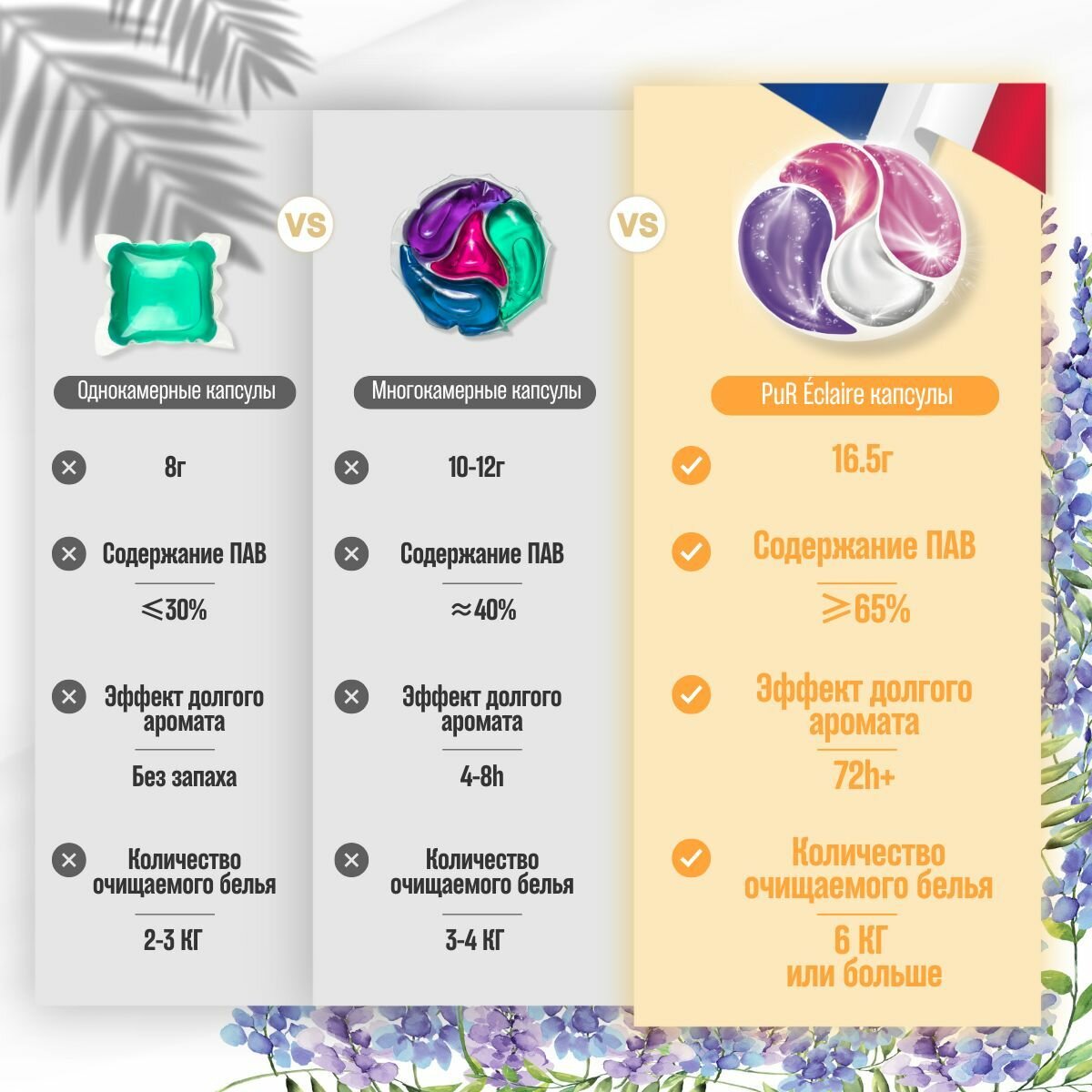 Капсулы для стирки PUR "Прованс" 6в1 с ароматом лаванды 60 шт. информация:
