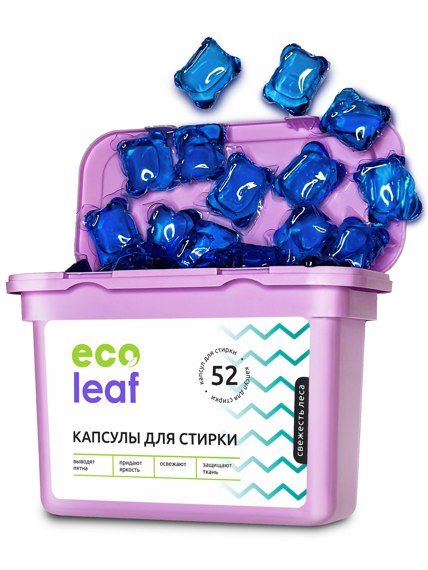 Капсулы для стирки EcoLeaf "Свежесть Леса", антибактериальный эффект, 52 шт информация: