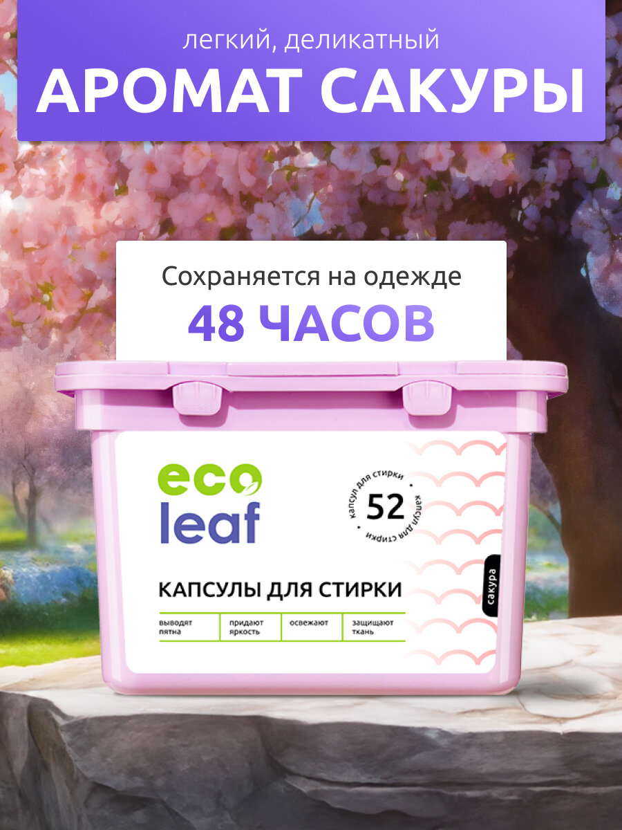 Капсулы для стирки EcoLeaf "Сакура", антибактериальный эффект, 52 шт информация:
