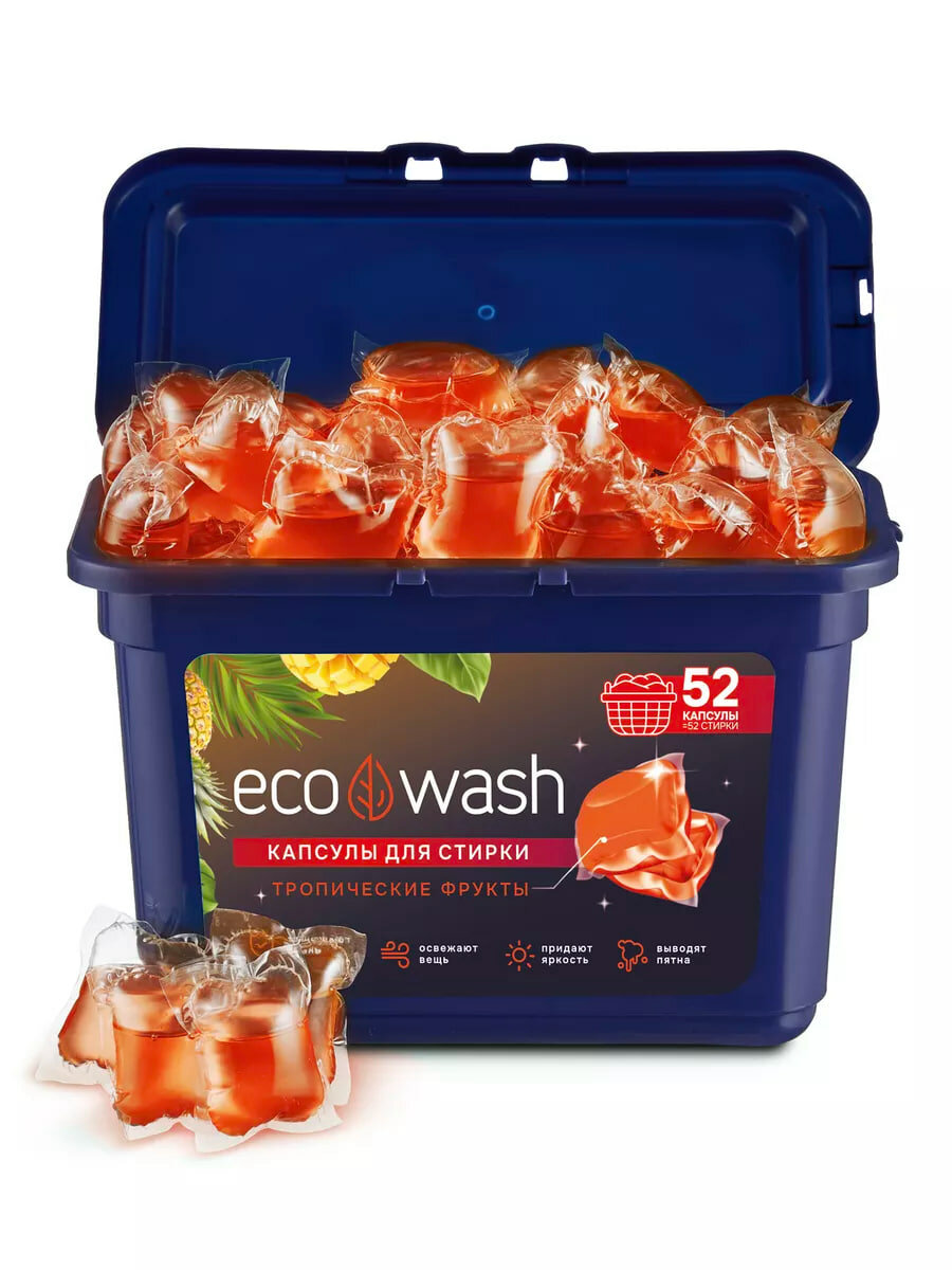 10 цен на Капсулы для стирки EcoWash с антибактериальным эффектом, Тропики, 52 штуки