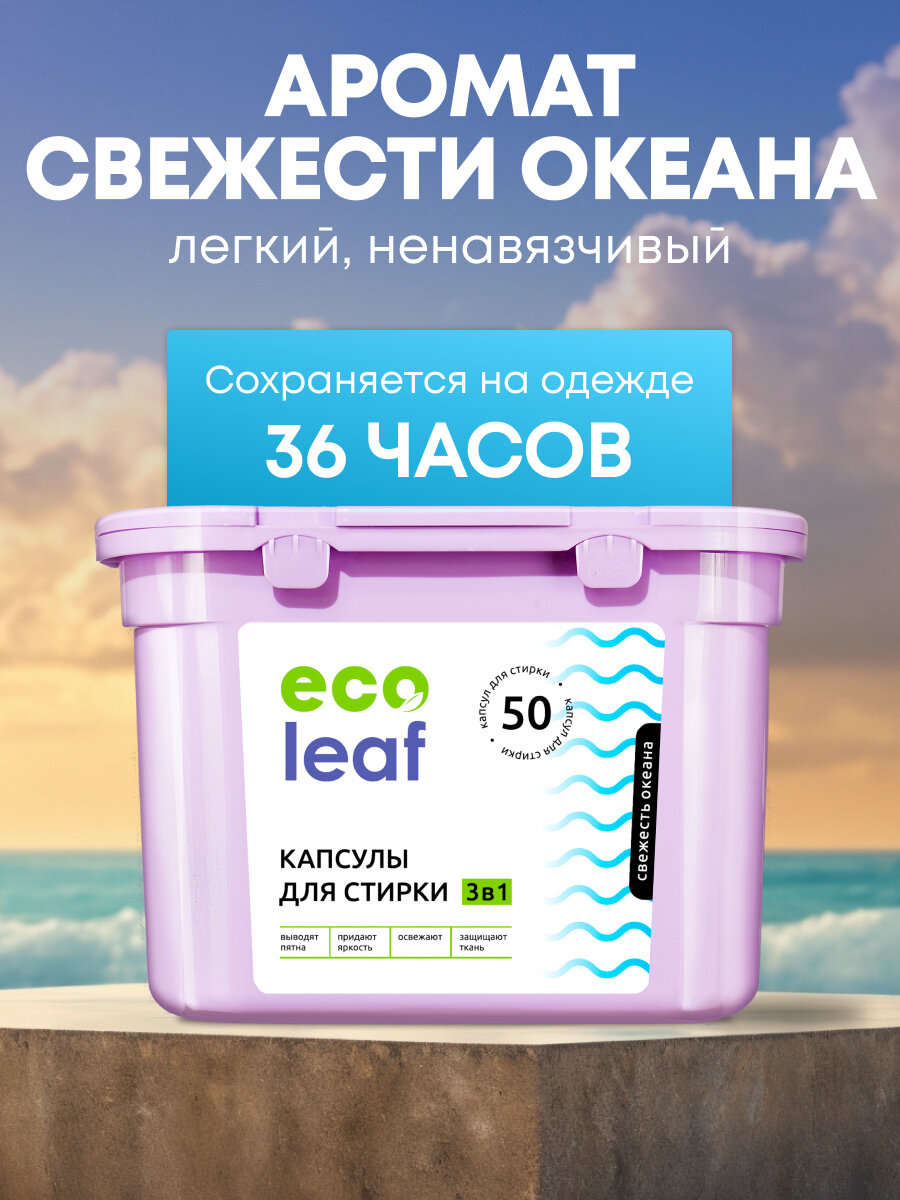 Капсулы для стирки EcoLeaf "Свежесть Океана3в1", антибактериальный эффект, 50 шт информация: