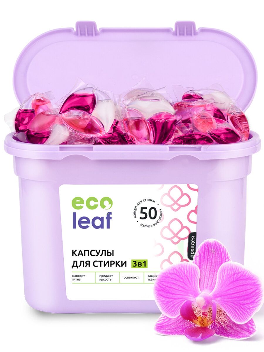 Капсулы для стирки EcoLeaf "Орхидея 3в1", антибактериальный эффект, 50 шт информация: