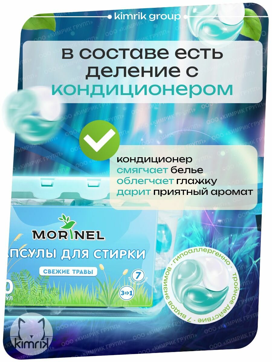 Капсулы для стирки Morinel с ароматом "Свежие травы" в контейнере 30 капсул информация: