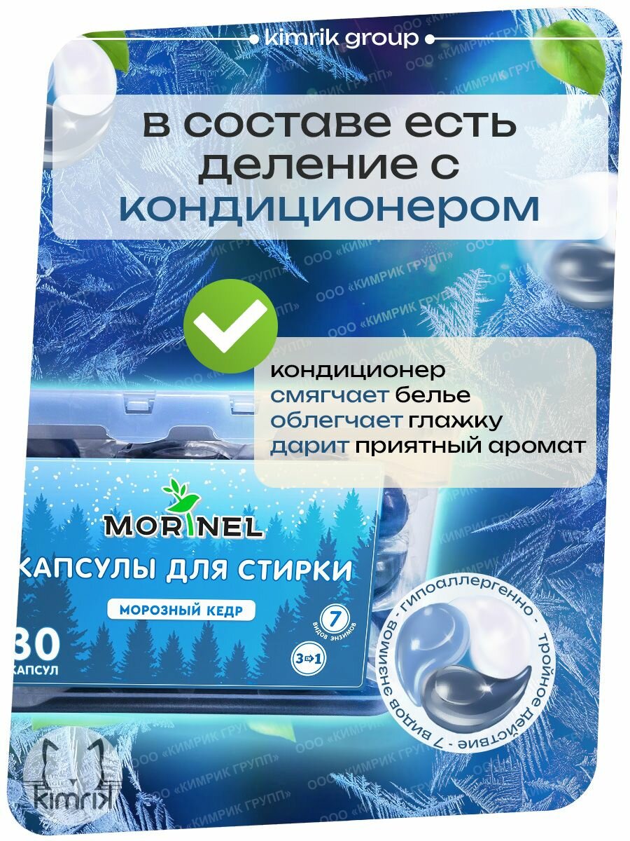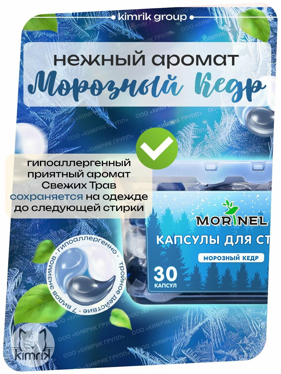 Капсулы для стирки Morinel с ароматом "Морозный Кедр" в контейнере 30 капсул информация: