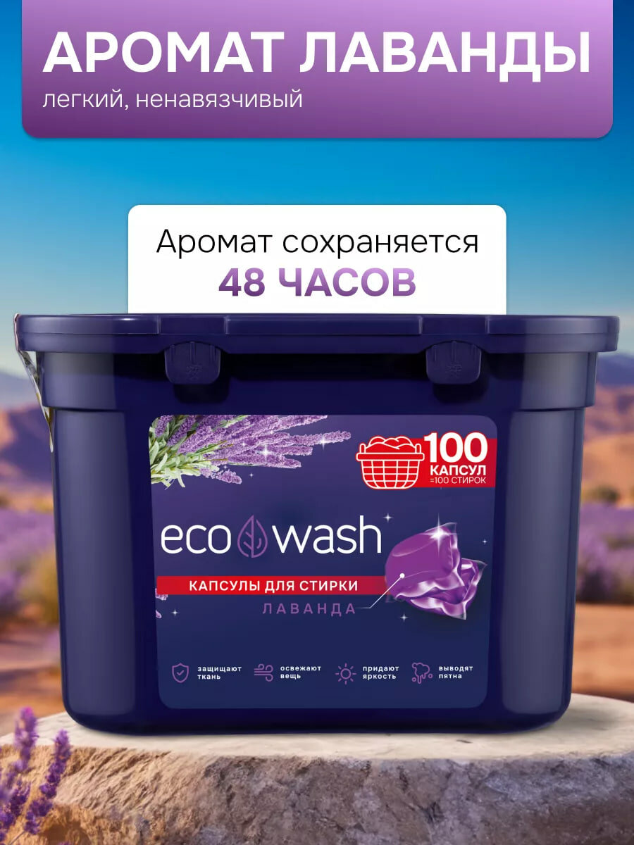 10 цен на Капсулы для стирки EcoWash с антибактериальным эффектом, Лаванда, 100 штук