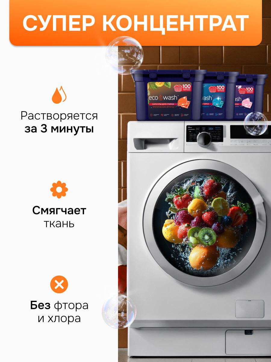 Капсулы для стирки EcoWash с антибактериальным эффектом, Тропики, 100 штук информация: