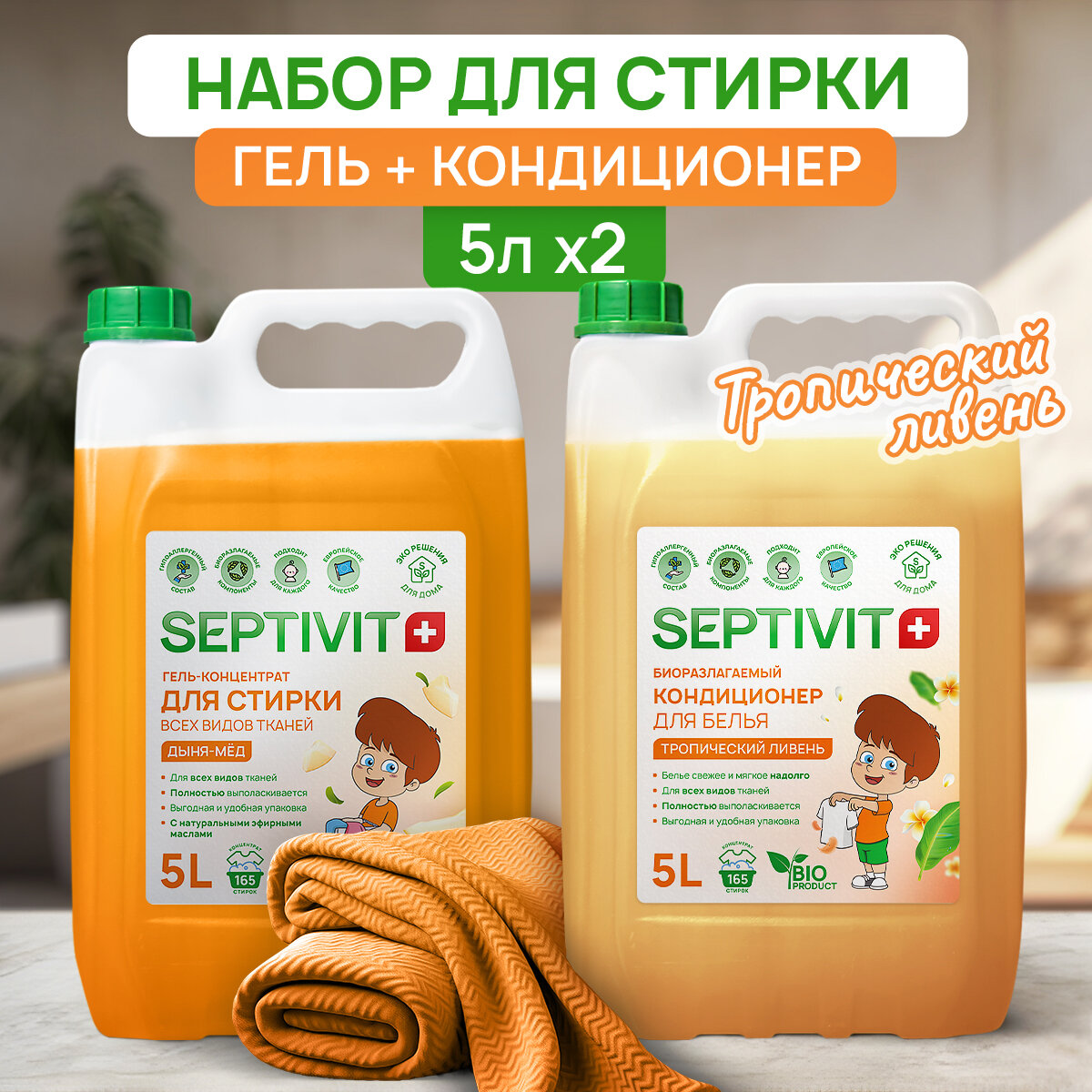 Отзывы на Набор Septivit Гель для стирки Дыня и мед 5л + Кондиционер Тропический ливень 5л Септивит