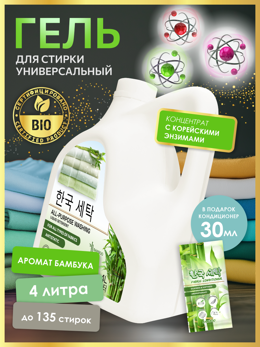 Гель для стирки концентрат, автомат, с пятновыводителем 5в1 PureBio гипоаллергенный информация: