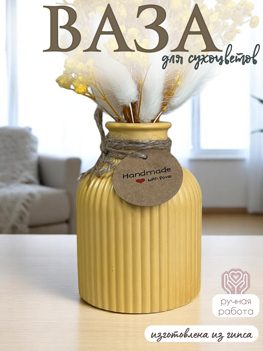 Ваза декоративная интерьерная для сухоцветов, ручная работа, гипс, желтая информация: