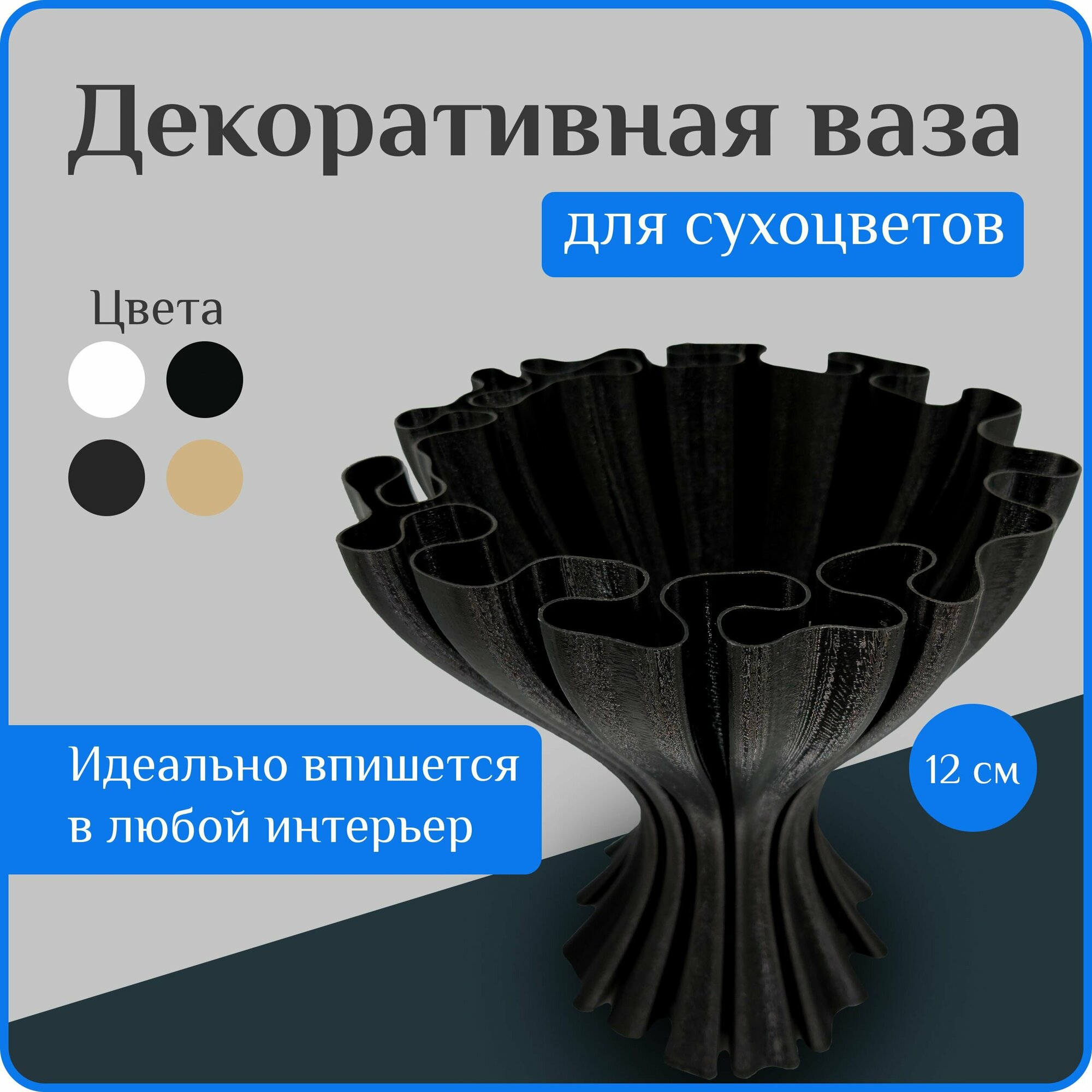 Ваза декоративная интерьерная "Черная", ваза для сухоцветов, мини ваза, вазы для декора, 14 см, пластик 1 290 ₽
