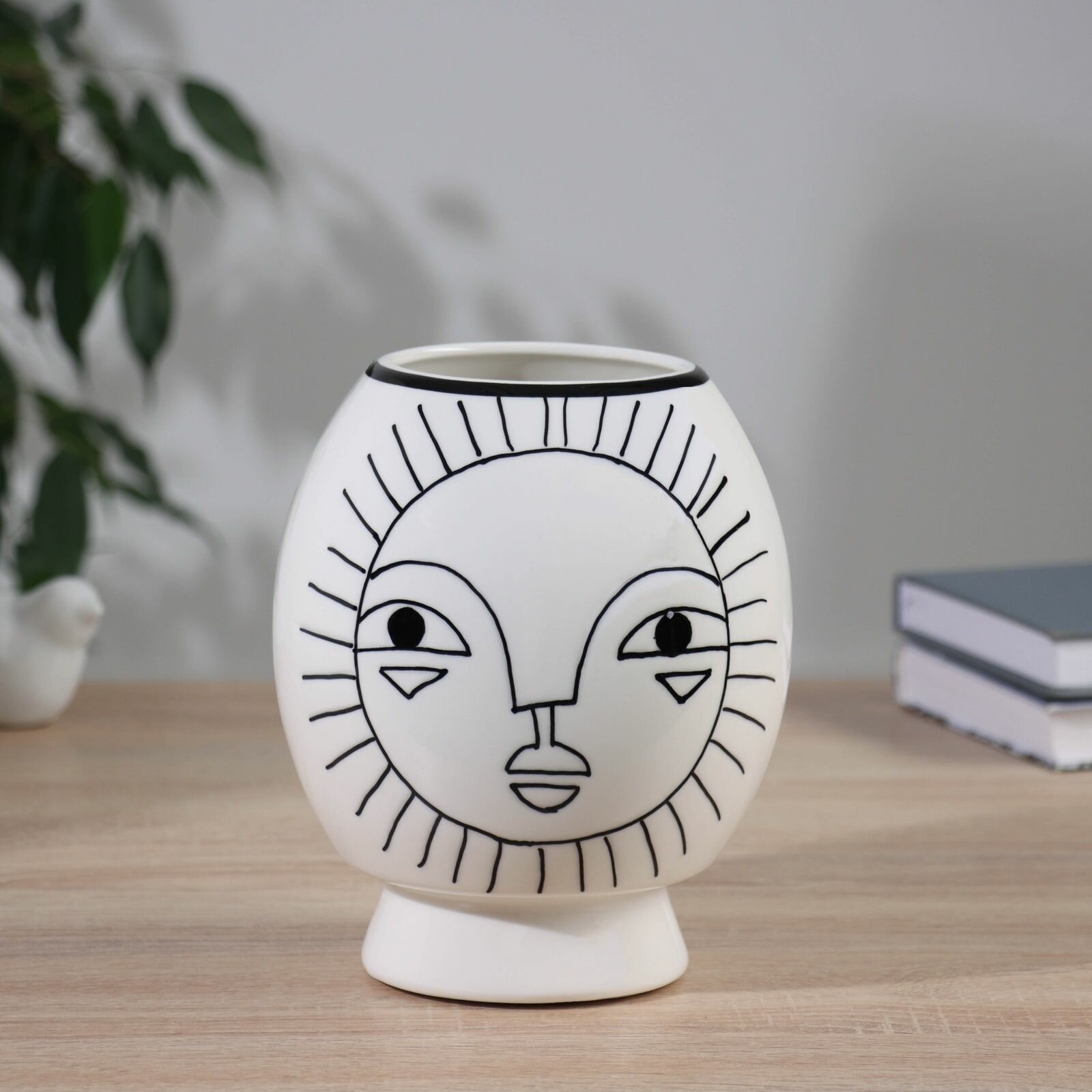 Керамическая ваза декоративная настольная Пикассо (ручная роспись), солнце, для цветов, сухоцветов, 17 12 см, чёрно-белый информация: